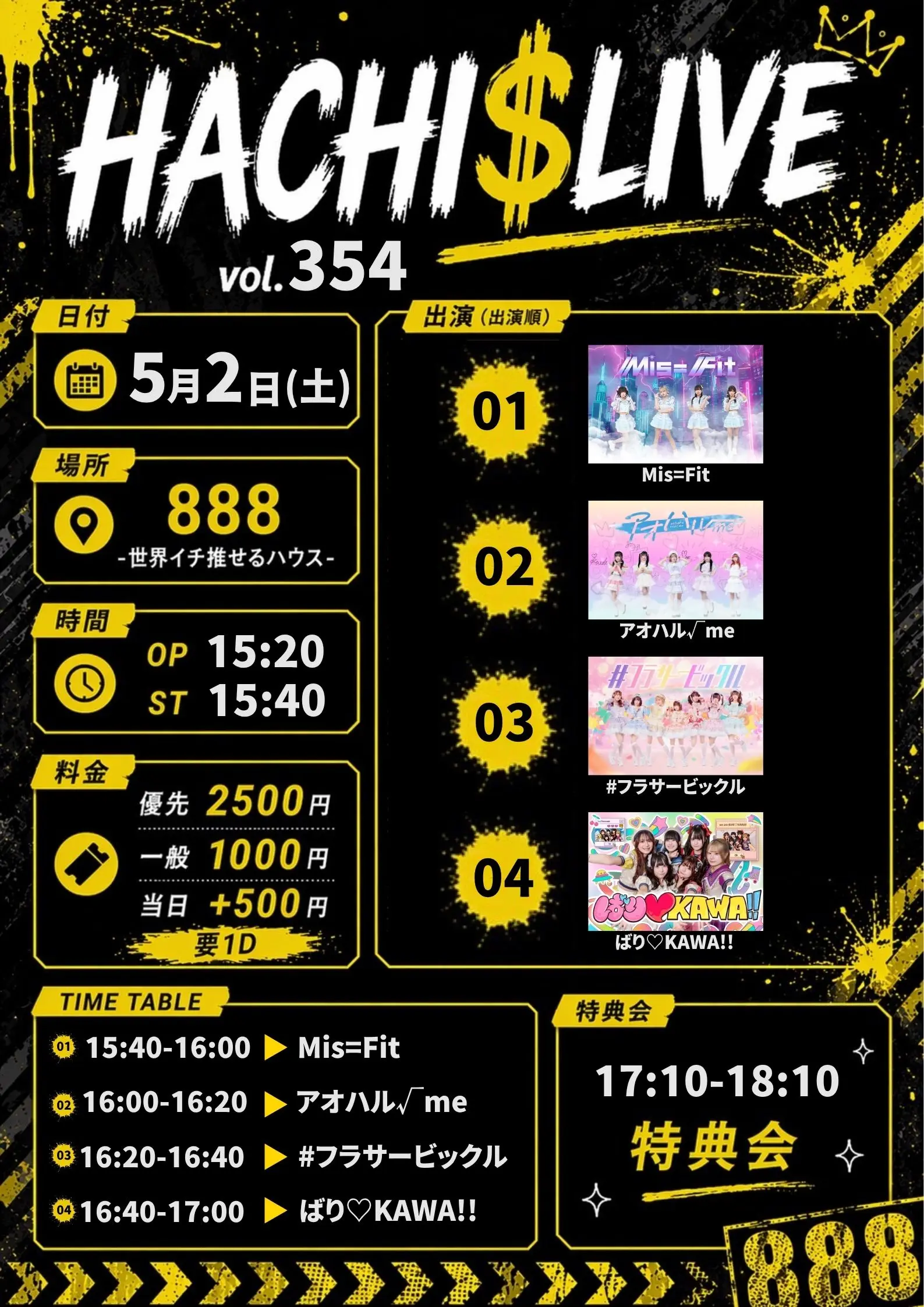 出演者 #フラサービックル / ばり♡KAWA!! / アオハル√ me / Mis=Fit
