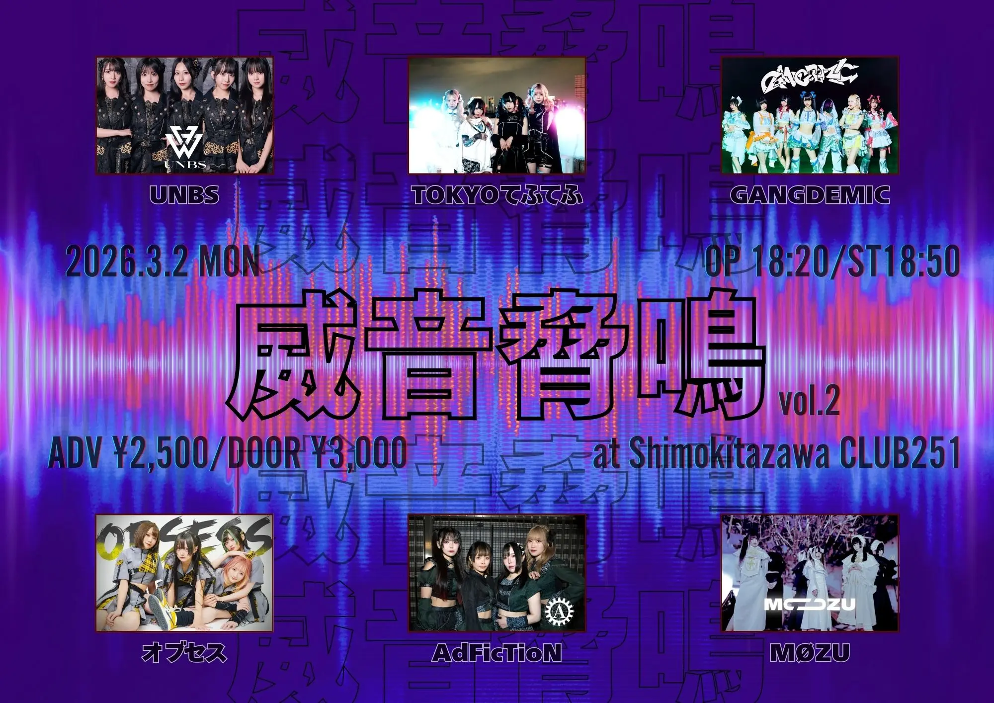 出演者 オブセス / UNBS / TOKYOてふてふ / GANGDEMIC / AdFicTioN / MØZU