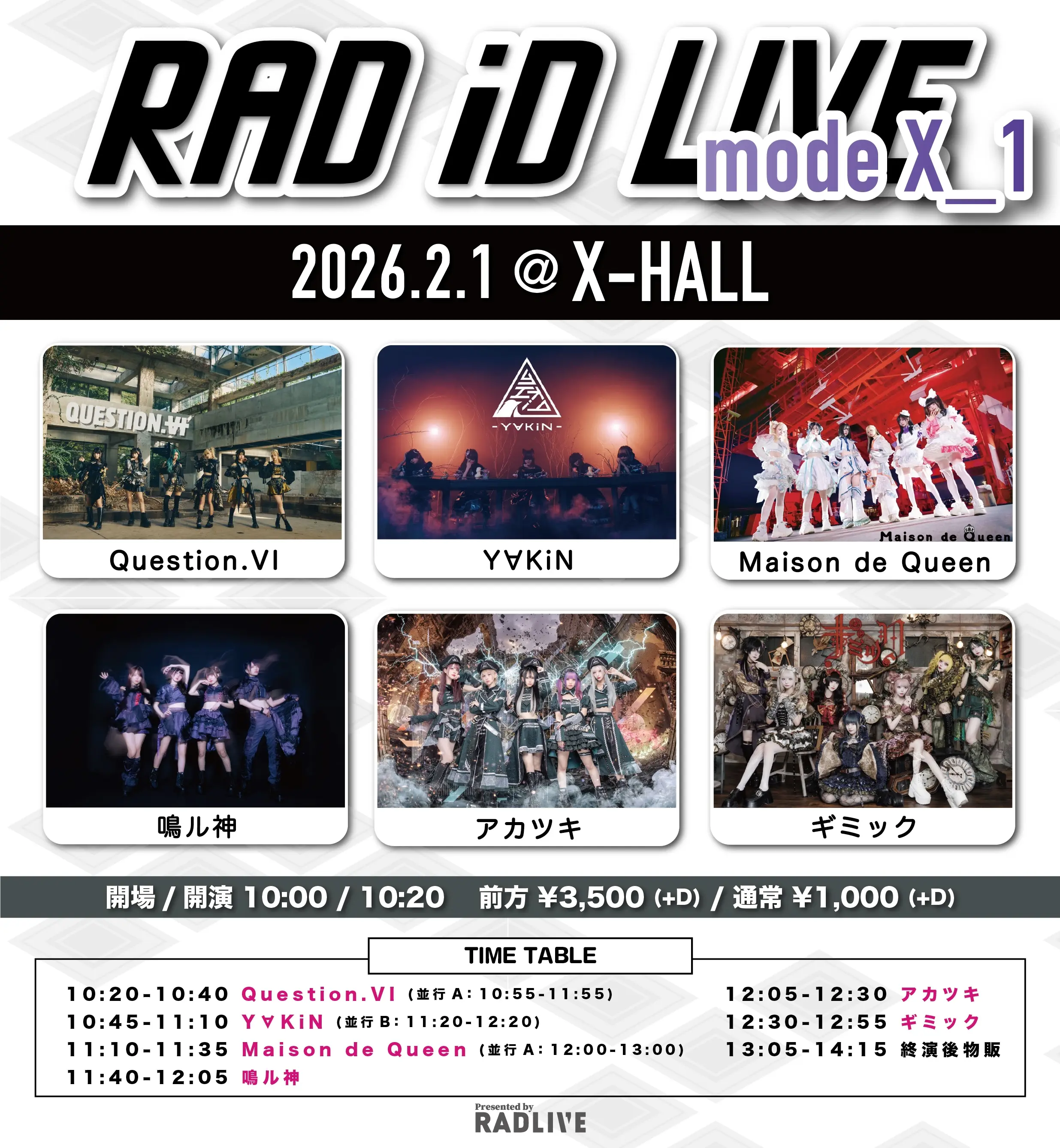 出演者 Question. VI / Y∀KiN / Maison de Queen / 鳴ル神 / アカツキ / ギミック