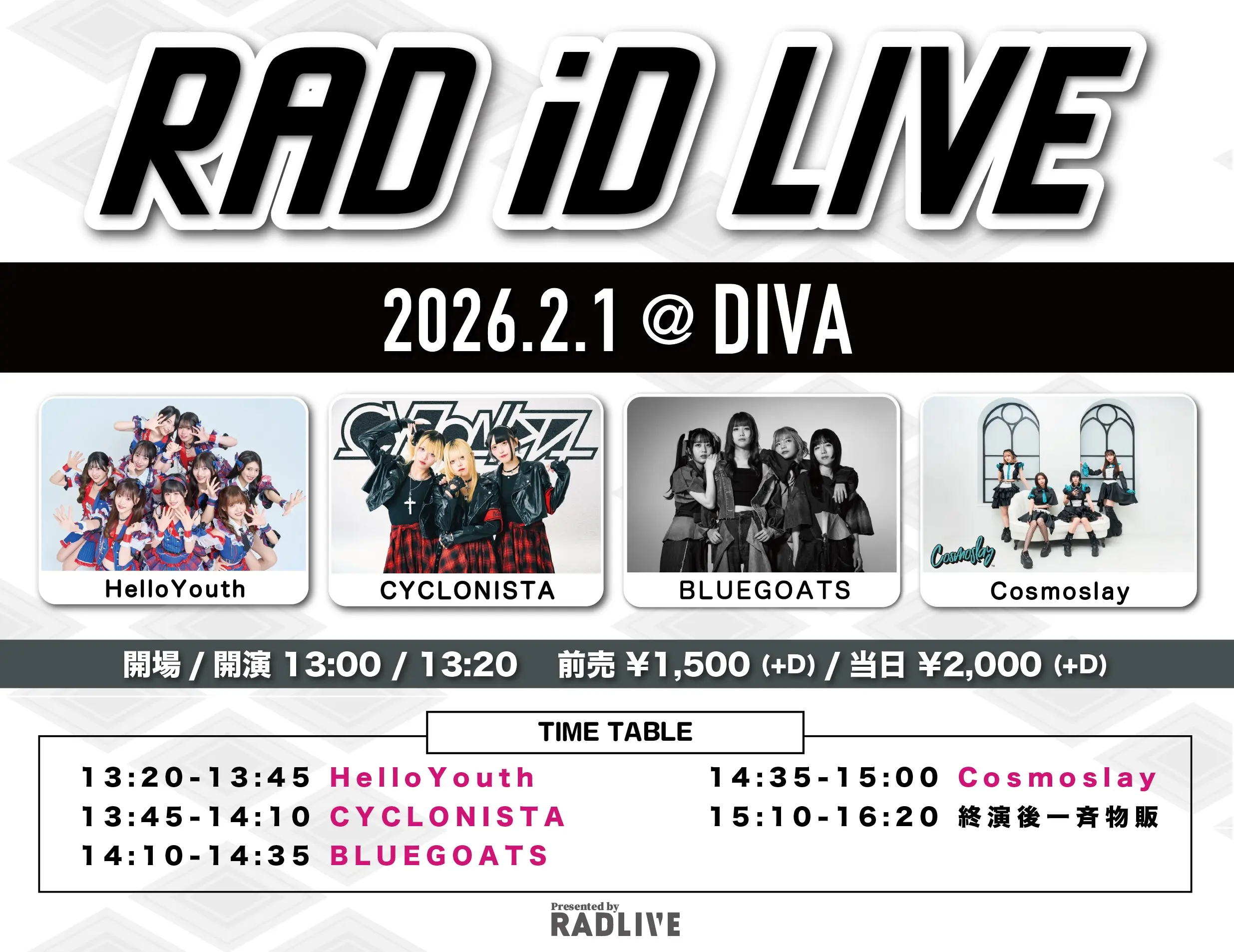 出演者 HelloYouth / CYCLONISTA / BLUEGOATS / Cosmoslay