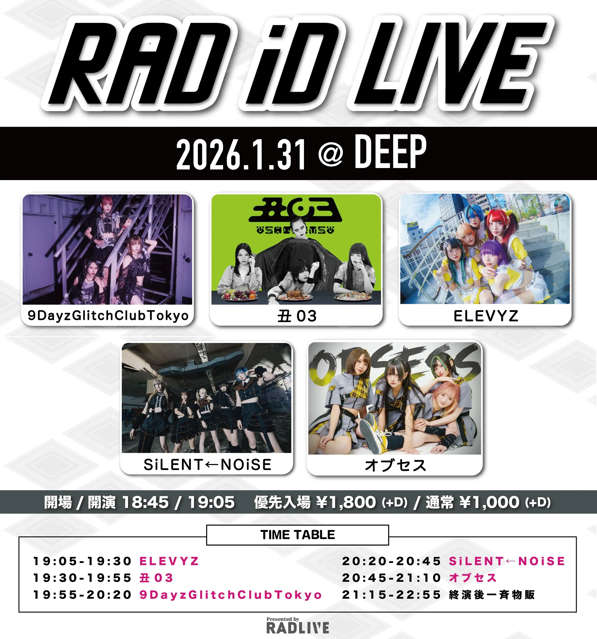 出演者 9DayzGlitchClub Tokyo / 丑03 / ELEVYZ / SiLENT←NOiSE / オブセス