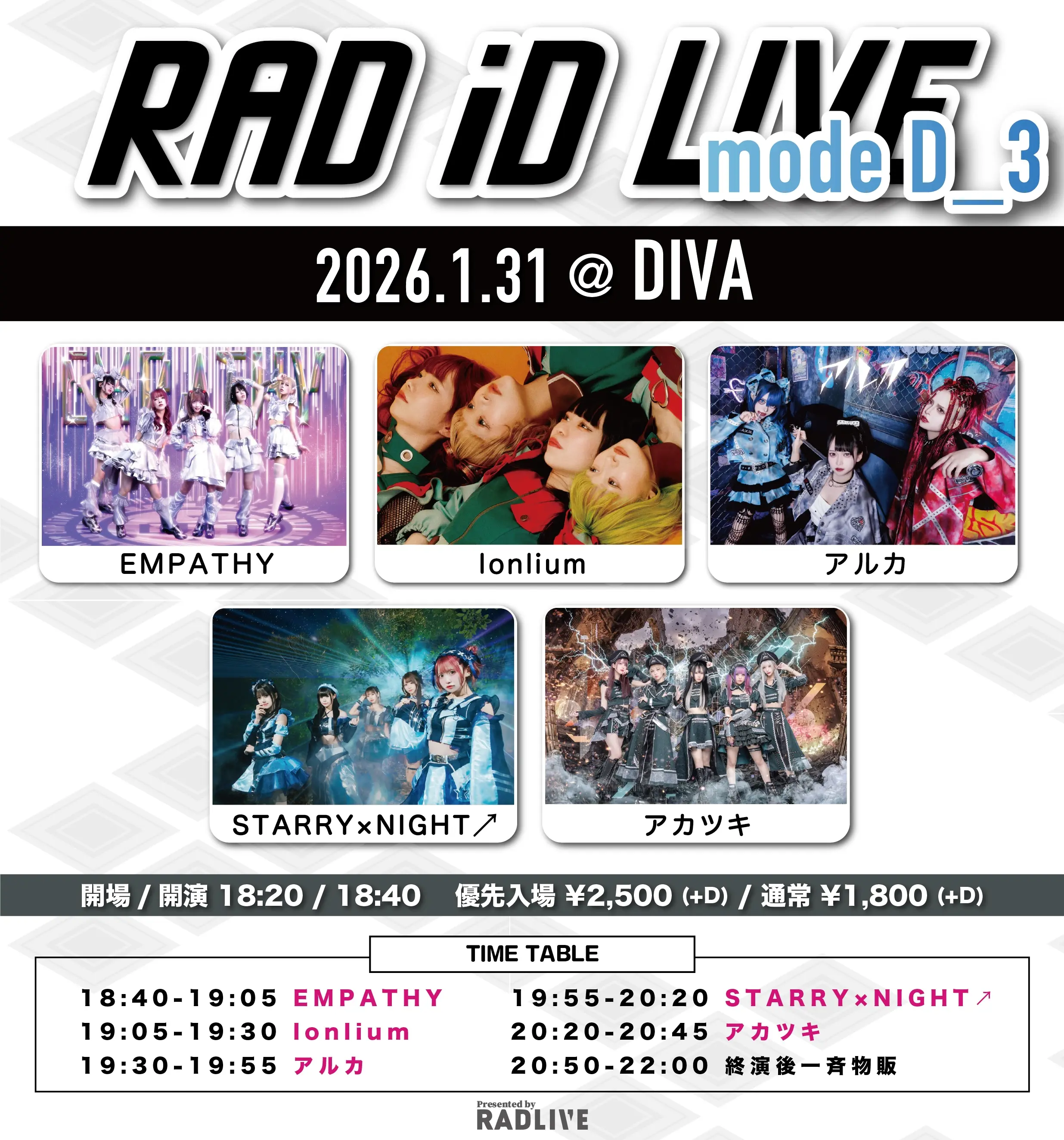 出演者 アカツキ / lonlium / STARRY×NIGHT↗ / EMPATHY / アルカ