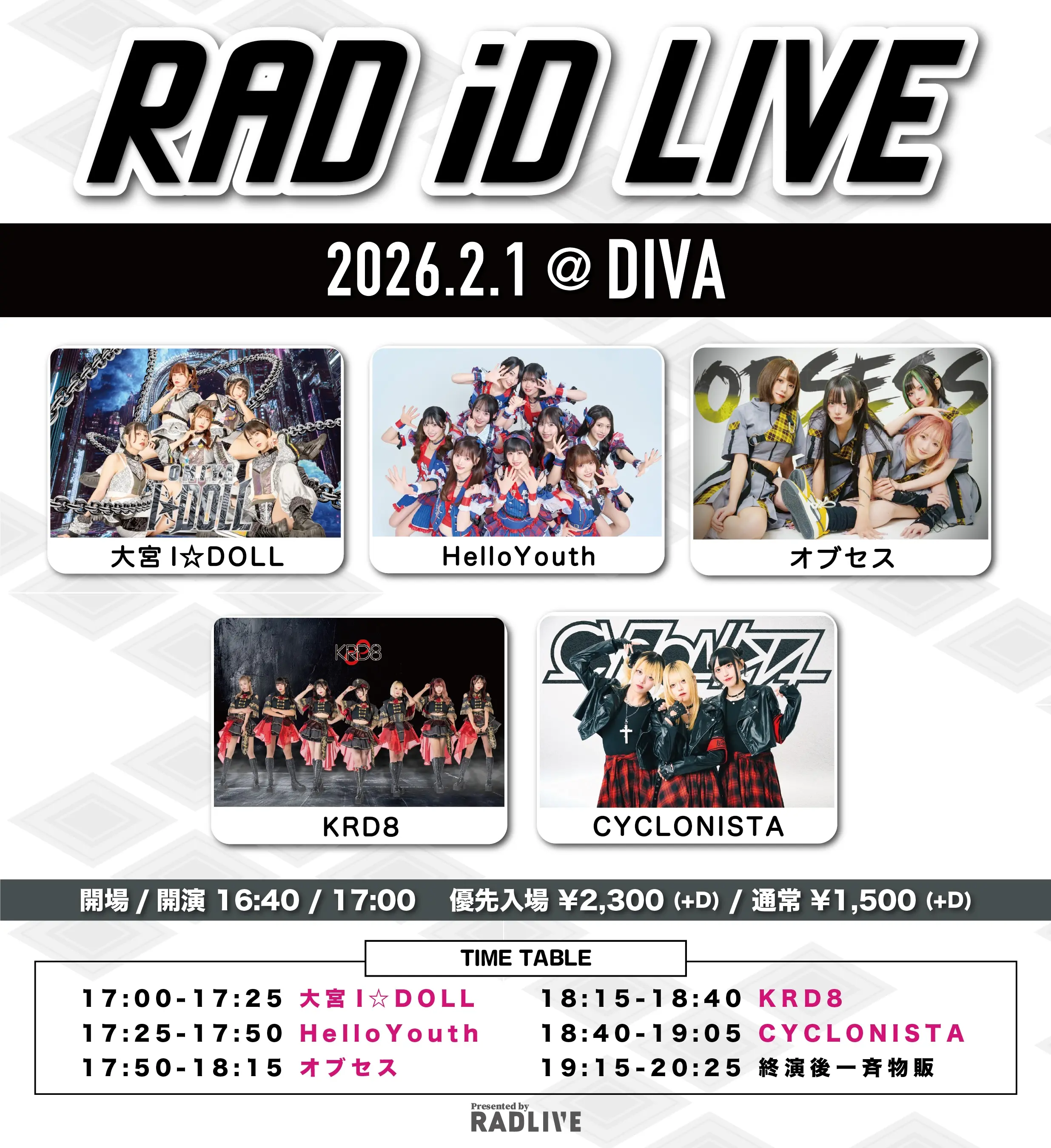 出演者 大宮I☆DOLL / HelloYouth / オブセス / KRD8 / CYCLONISTA