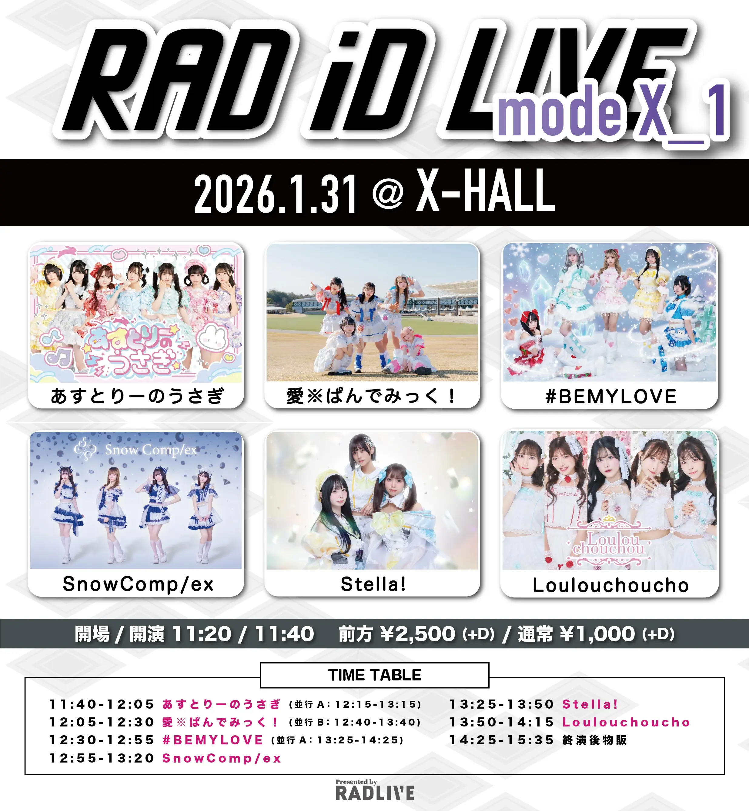 出演者 あすとりーのうさぎ / 愛※ばんでみっく! / #BEMYLOVE / SnowComp/ex / Stella! / Loulouchoucho