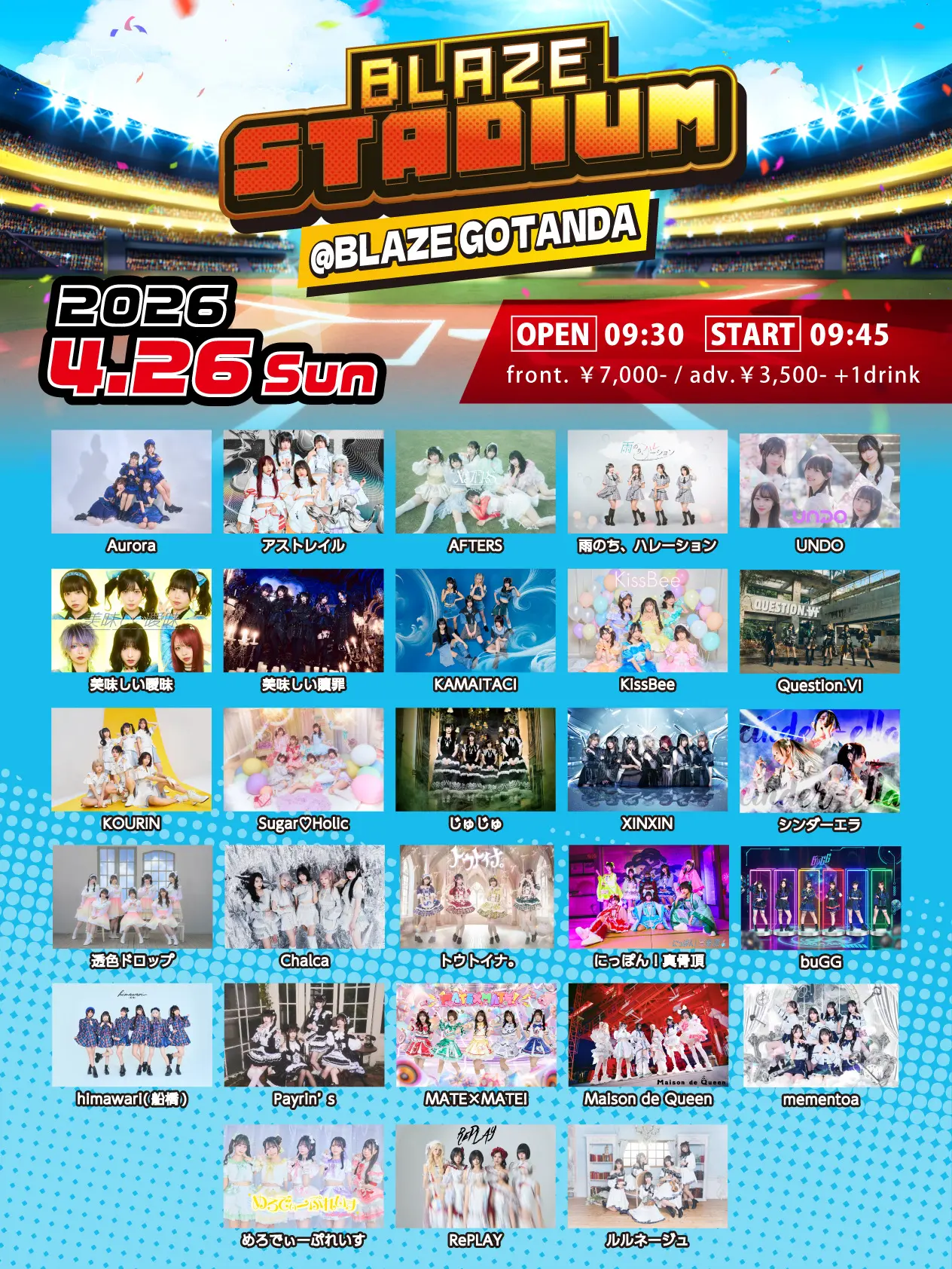 出演者 透色ドロップ / アストレイル / COLOR of COLOR / zanka / 9DayzGlitchClubTokyo / 鳴ル神 / iCON! / アキストゼネコ / AZ-ON / 雨のち、ハレーション / UNDO / il pleut / KissBee / kimikara(きみから) / KOURiN / Sugar♡Holic / スプスラッシュ / Sophià la Mode / Chalca / NEFRALISE / buGG / Payrin's / ポラライト / My_Stage / Malcolm Mask McLaren / めろでぃーぷれいす / 夢みるアドレセンス / RePLAY