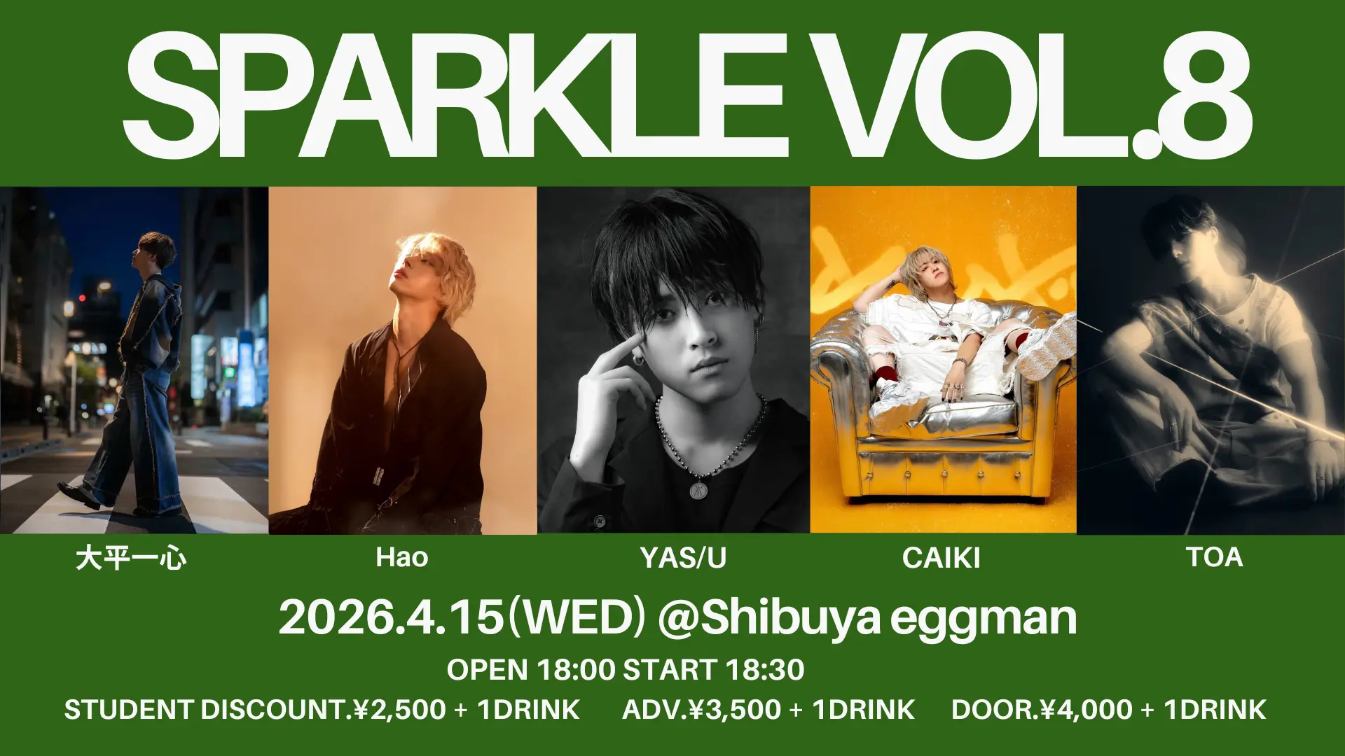 出演者 CAIKI / TOA / Hao / 大平一心 / YAS/U