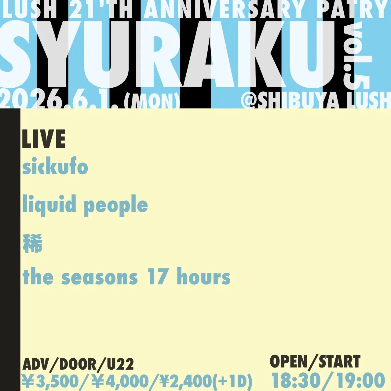 出演者 sickufo / liquid people / 稀 / the seasons 17 hours