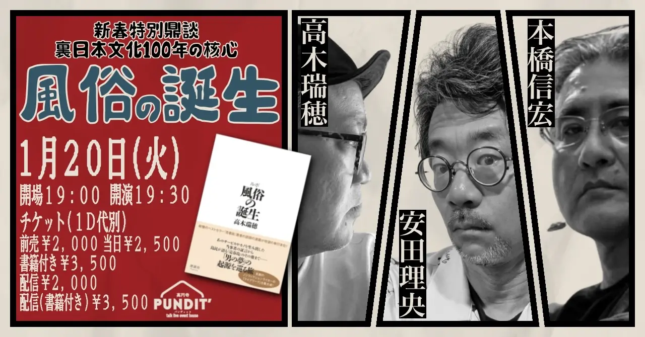 1月20日(火)新春特別鼎談:裏日本文化100年の核心『風俗の誕生』本橋信宏×安田理央×高木瑞穂