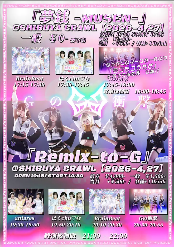 出演者 BrainBeat / Gの衝撃 / antares / はくchu♡む