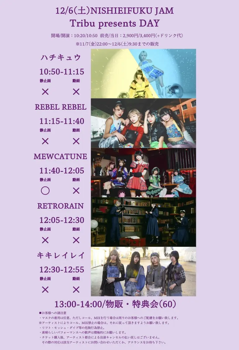 出演者 ハチキュウ / REBEL REBEL / MEWCATUNE / RETRORAIN / キキレイレイ