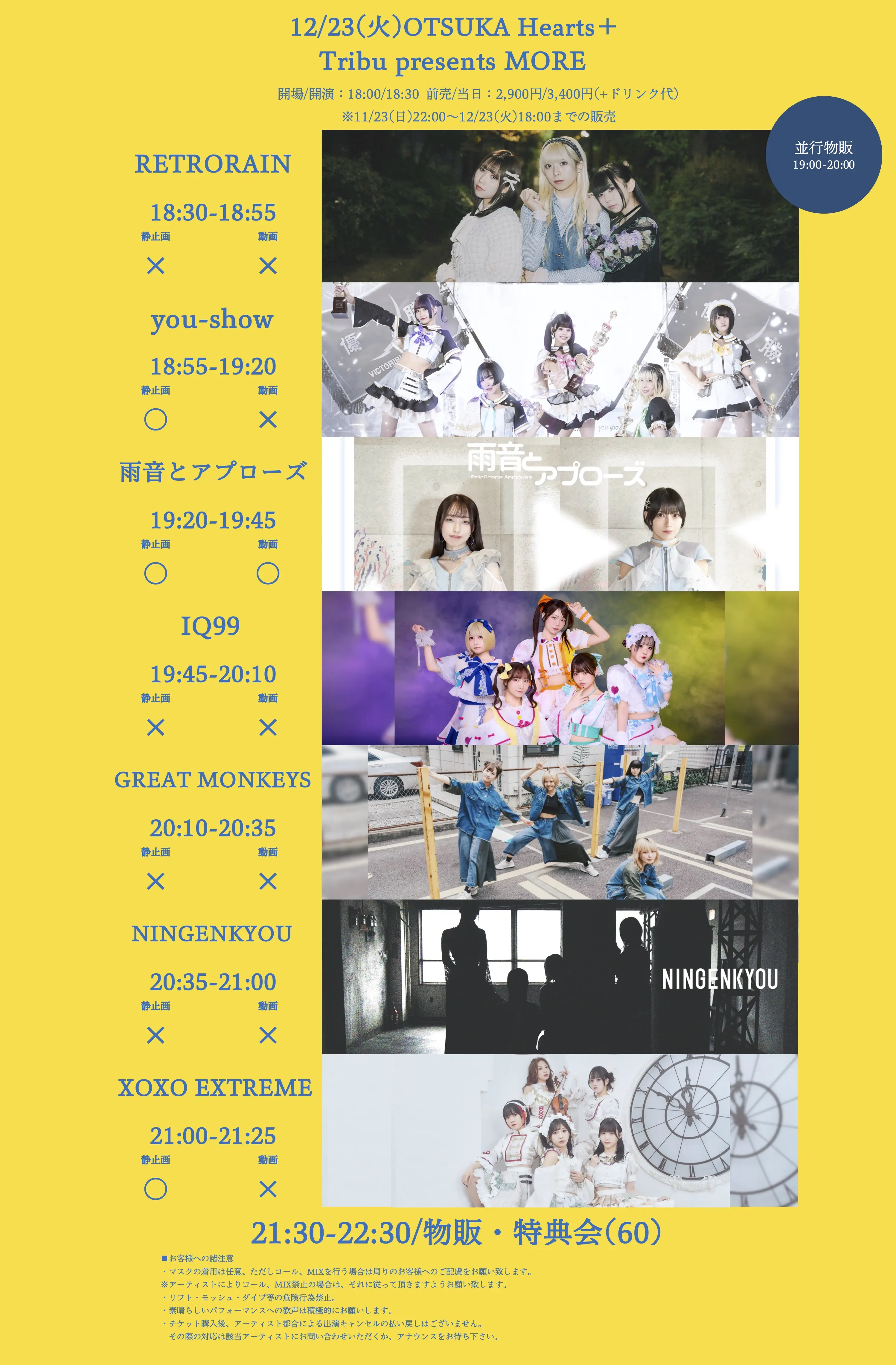 出演者 NINGENKYOU / XOXO EXTREME / 雨音とアプローズ / you-show / RETRORAIN / GREAT MONKEYS / IQ99