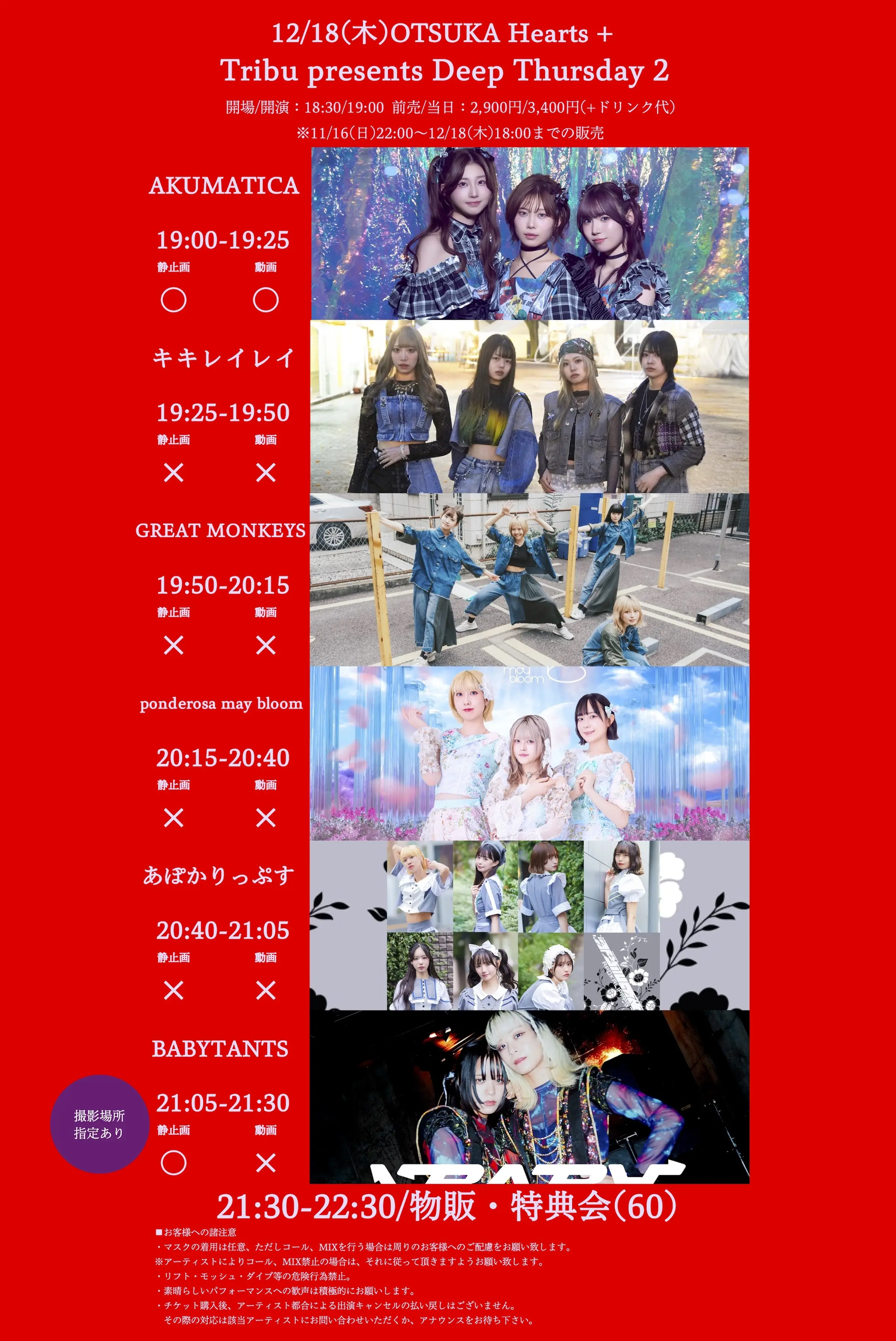 出演者 ponderosa may bloom / AKUMATICA / キキレイレイ / GREAT MONKEYS / あぽかりっぷす / BABYTANTS