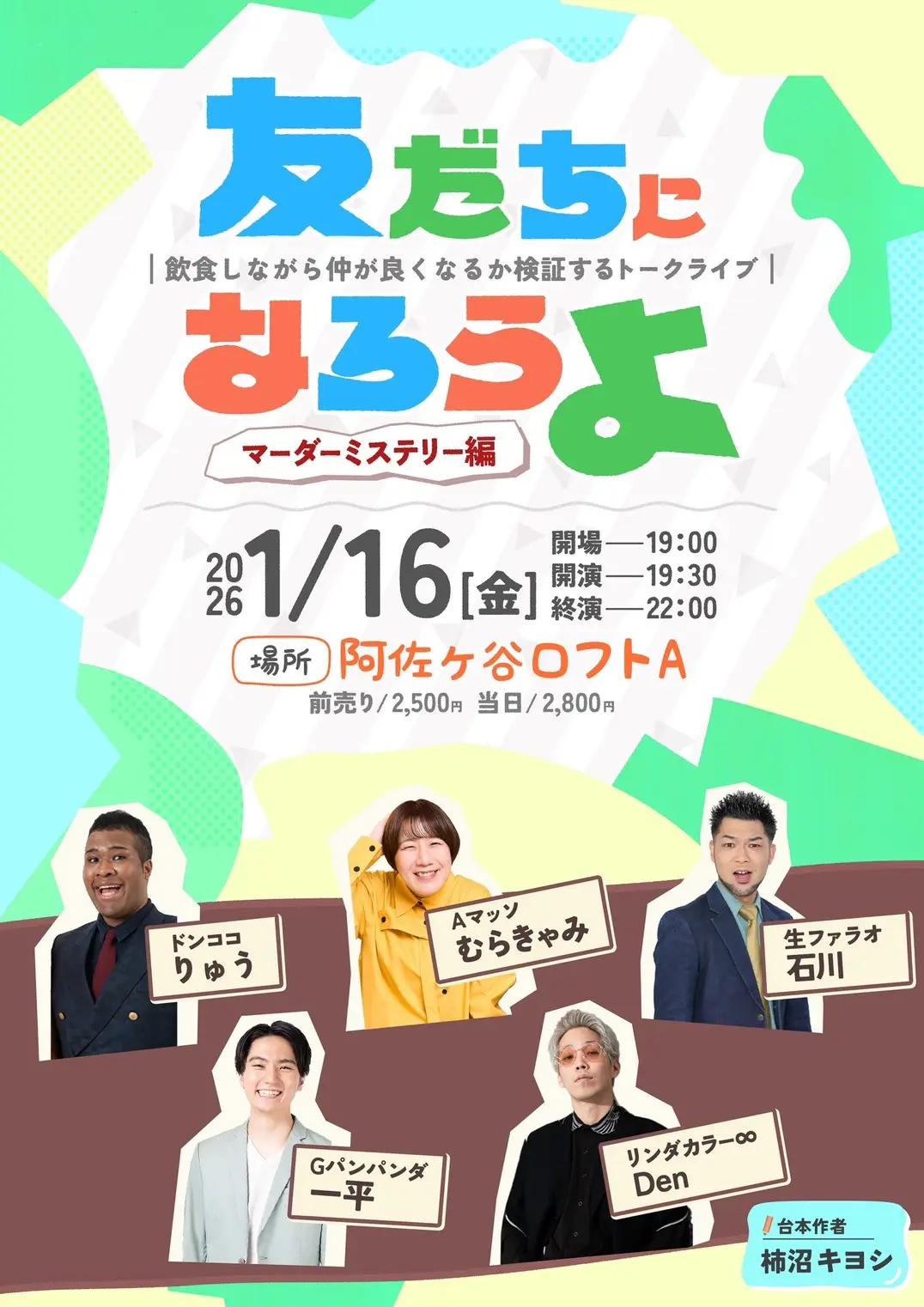 出演者 ドンココ 龍 / Aマッソ むらきゃみ / 生ファラオ 石川 / リンダカラー♾️ Den / おまけの夜 柿沼キヨシ(作家) / Gパンパンダ 一平