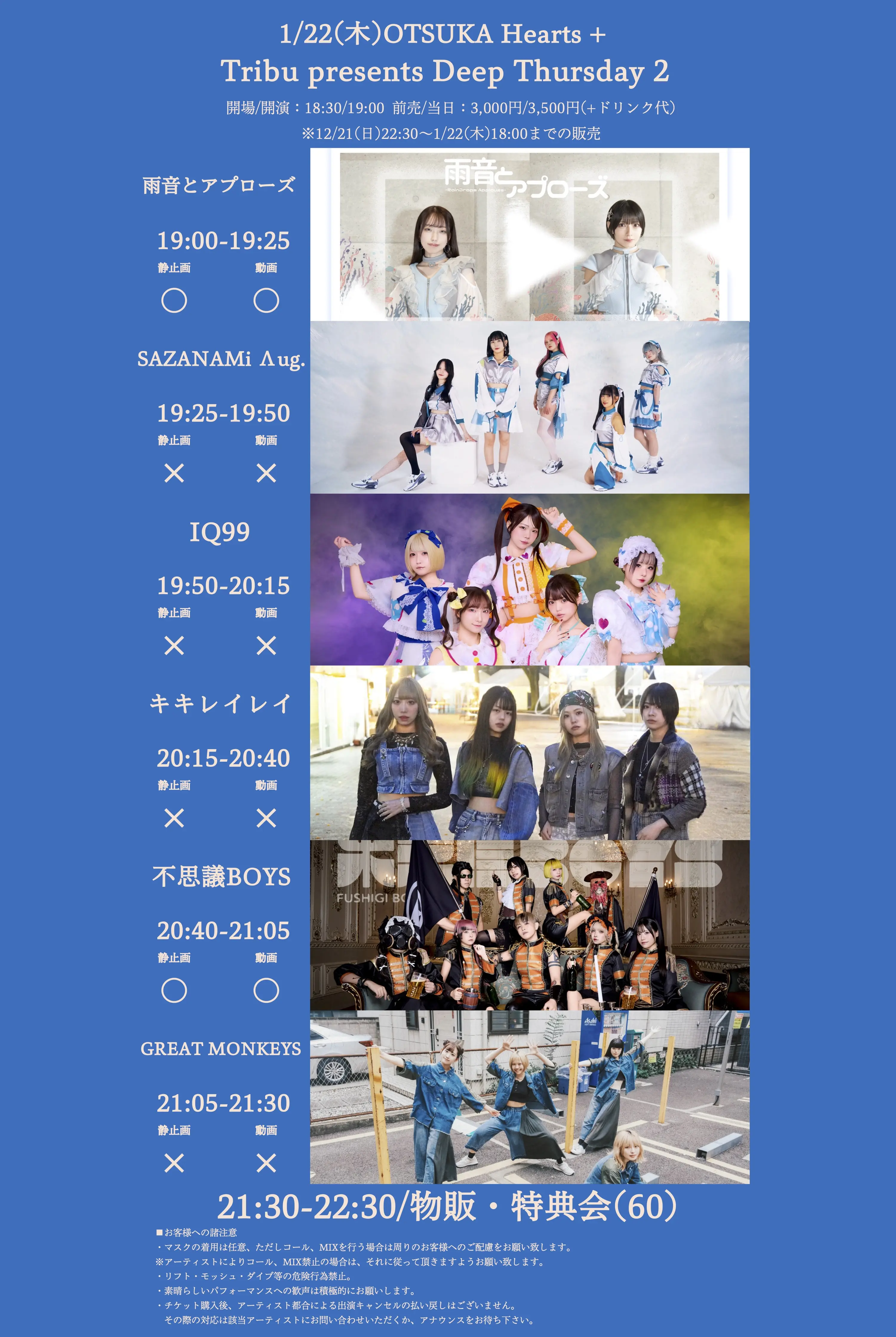 出演者 SAZANAMi Λug. / 雨音とアプローズ / IQ99 / キキレイレイ / 不思議BOYS / GREAT MONKEYS