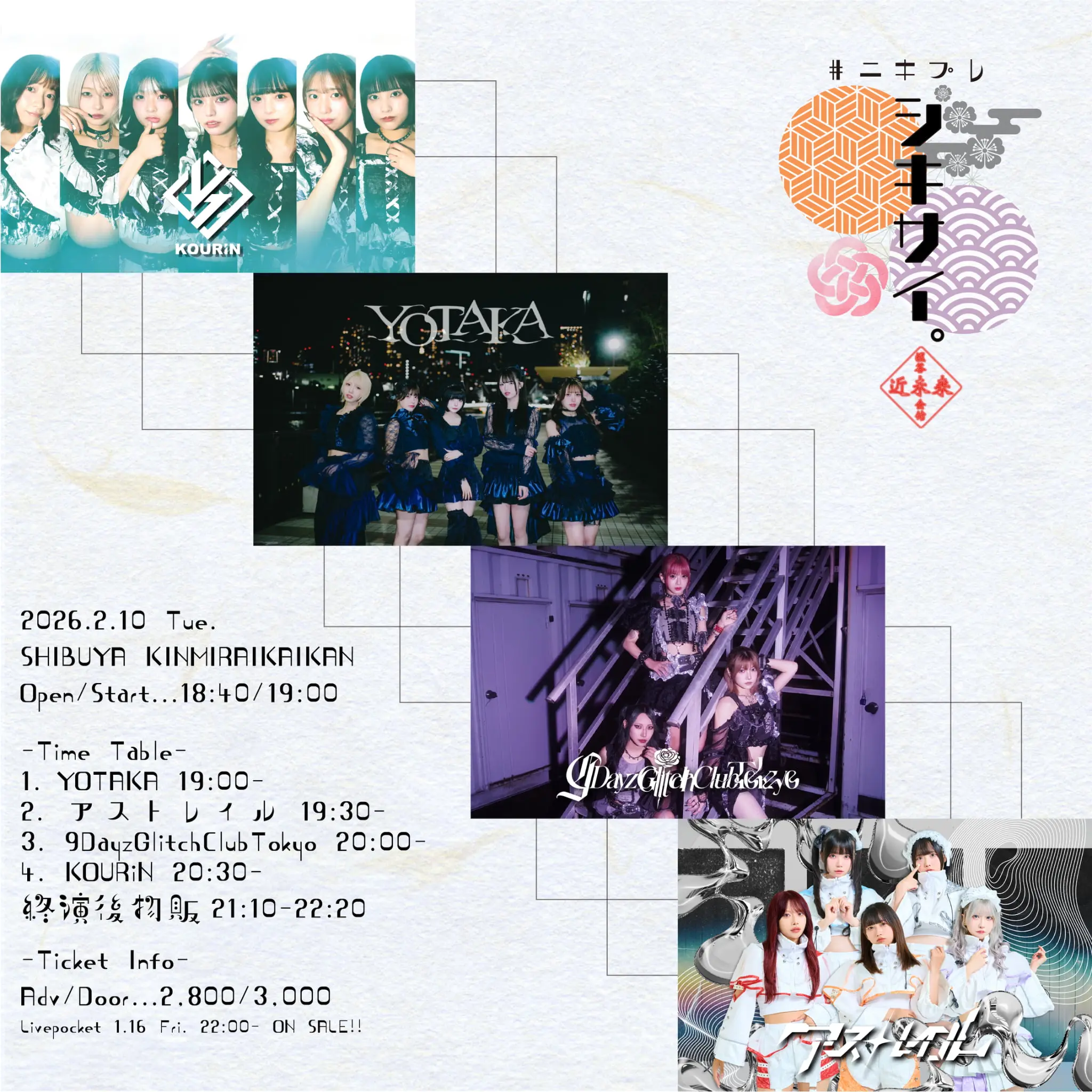 出演者 KOURiN / YOTAKA / 9DayzGlitchClubTokyo / アストレイル