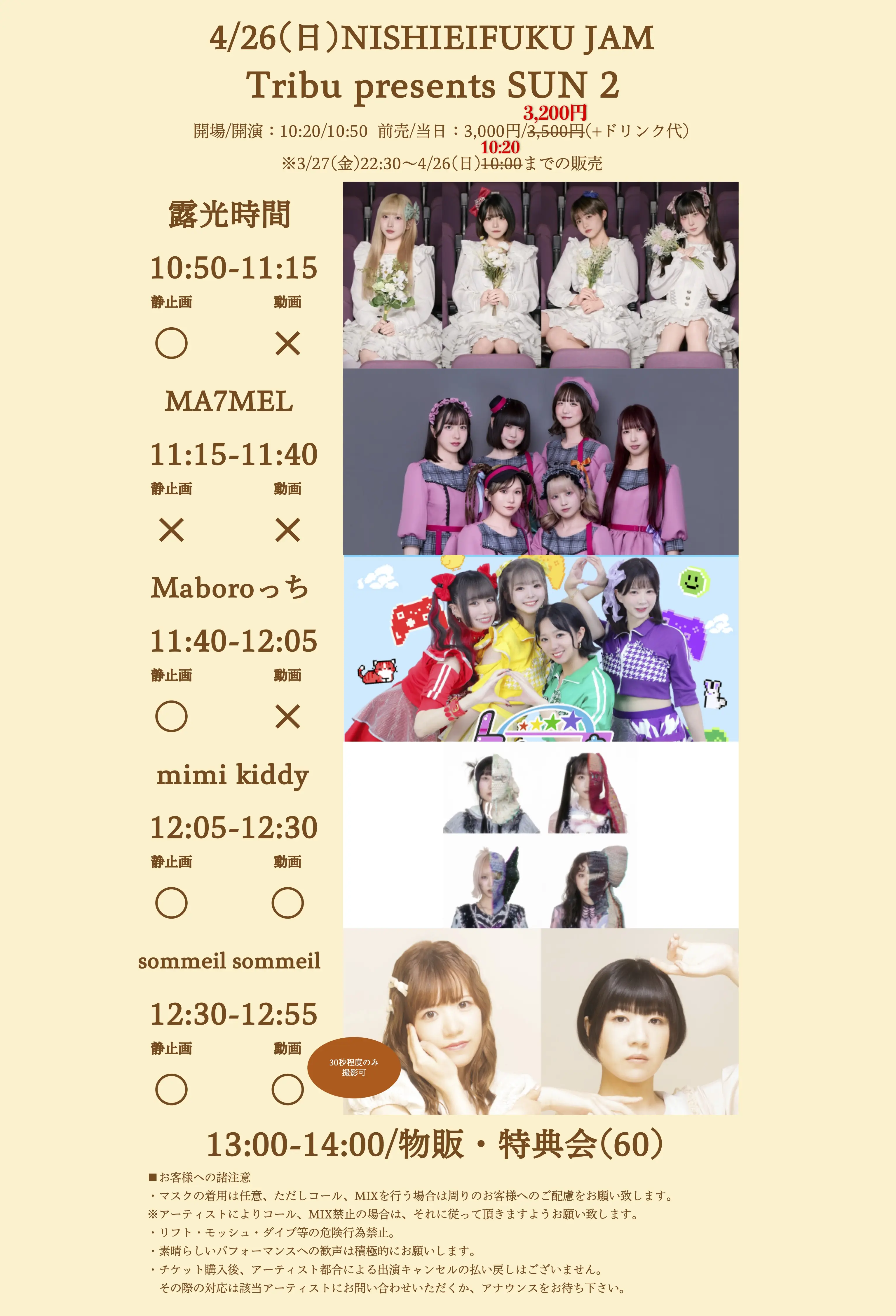 出演者 露光時間 / MA7MEL / Maboroっち / mimi kiddy / sommeil sommeil