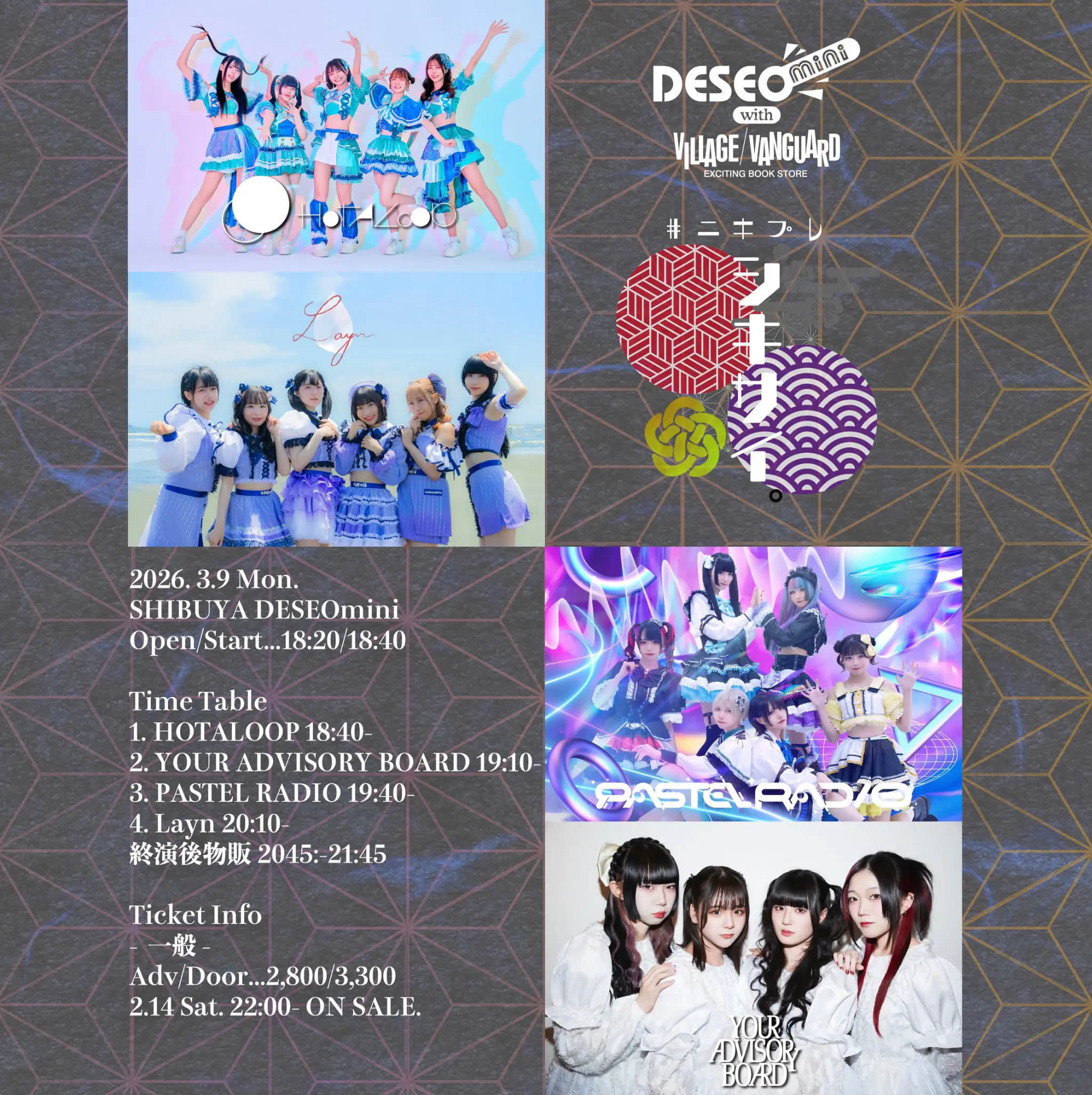 出演者 HOTALOOP / Layn / PASTEL RADIO / YOUR ADVISORY BOARD