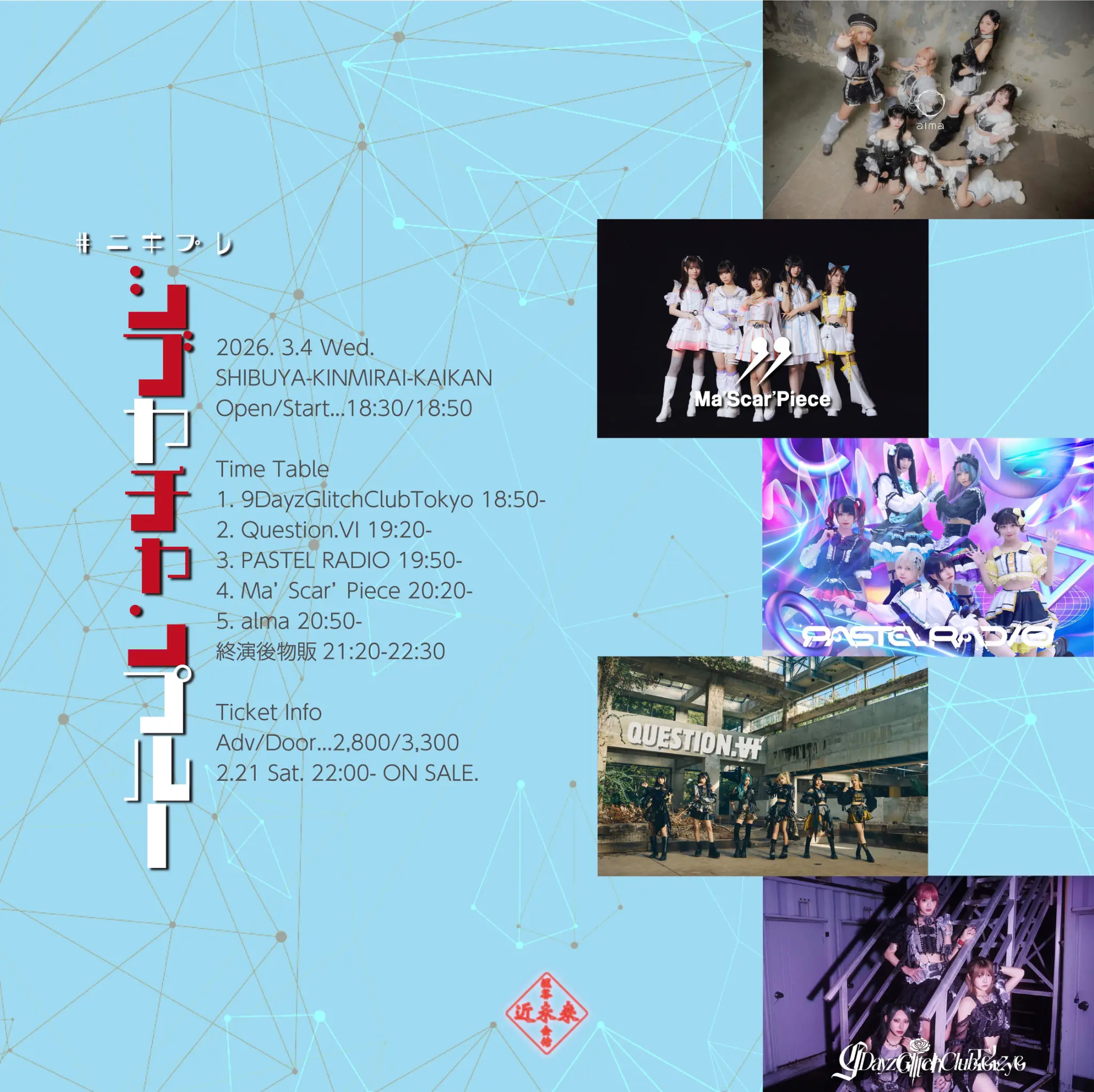 出演者 Question.VI / alma / 9DayzGlitchClubTokyo / Ma’Scar’Piece / PASTEL RADIO