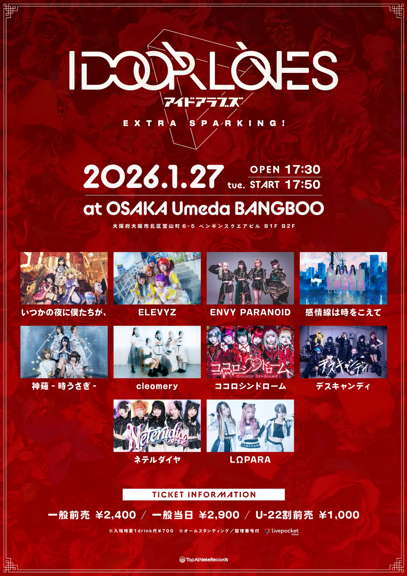 *入場時別途1Drink代700円かかります。U-22割前売