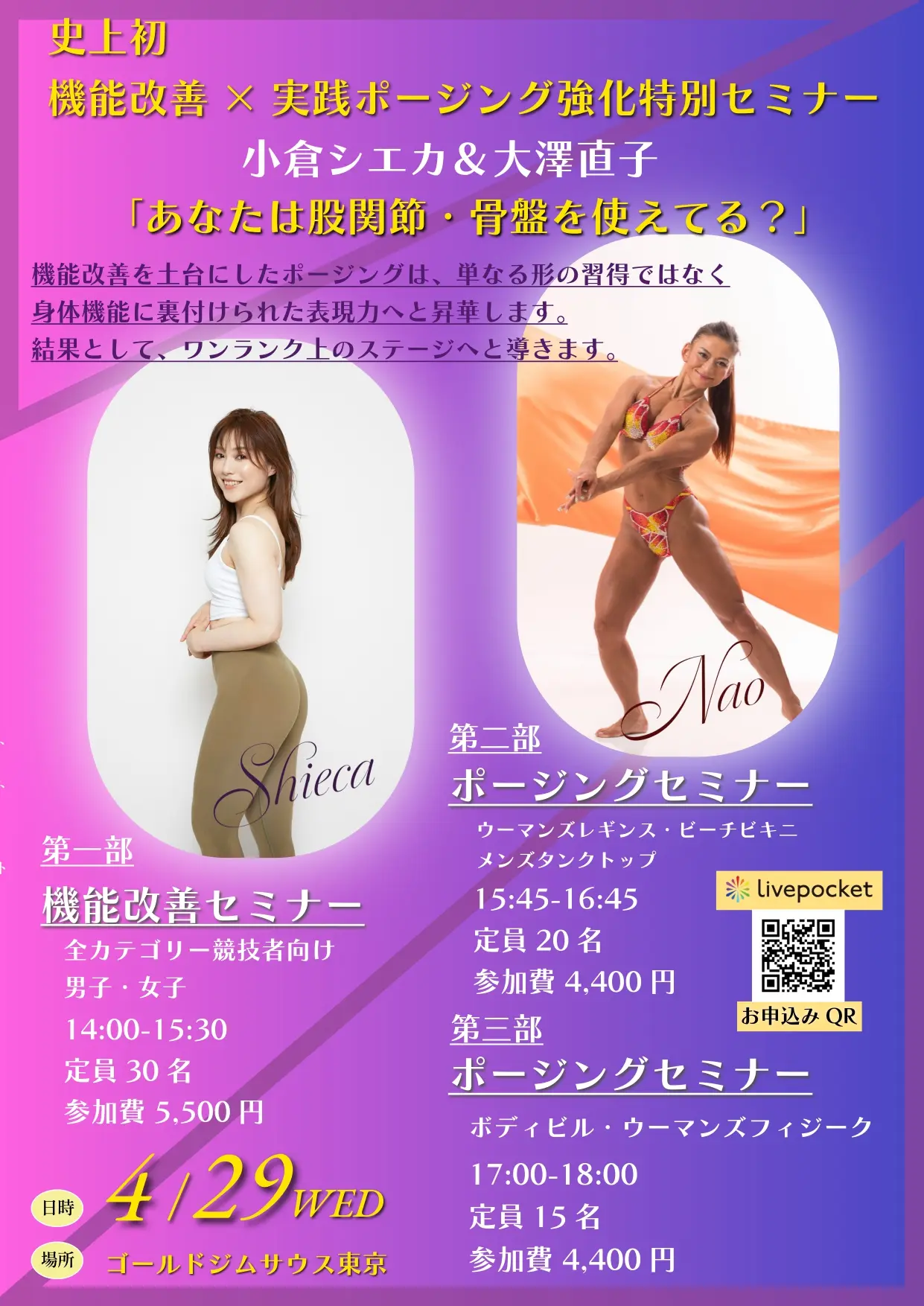 史上初 機能改善×実践ポージング強化特別セミナー「あなたは股関節・骨盤を使えてる?」