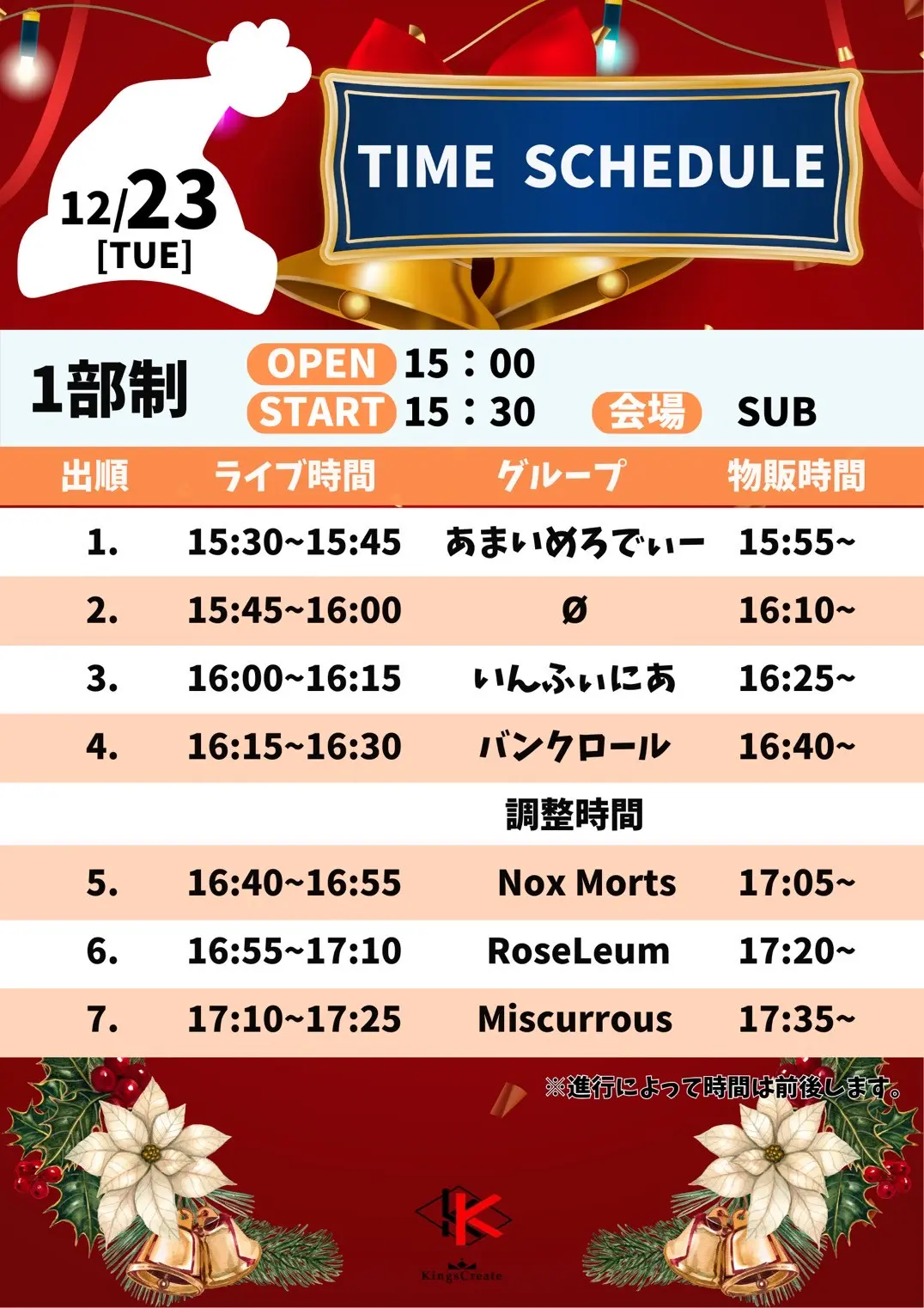 12/23 (火) 1部制 Miscurrous・RoseLeum・Nox Morts・バンクロール・あまいろめろでぃー・Ø -reverse-