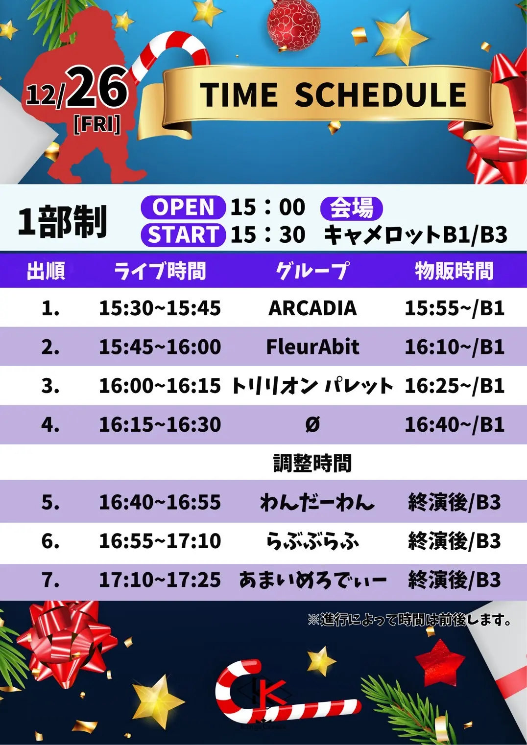 12/26 (金) 1部制 あまいろめろでぃー・らぶぶらふ・わんだーわん・Ø -reverse-・FleurAbit・TRILLION PALETTE・ARCADIA