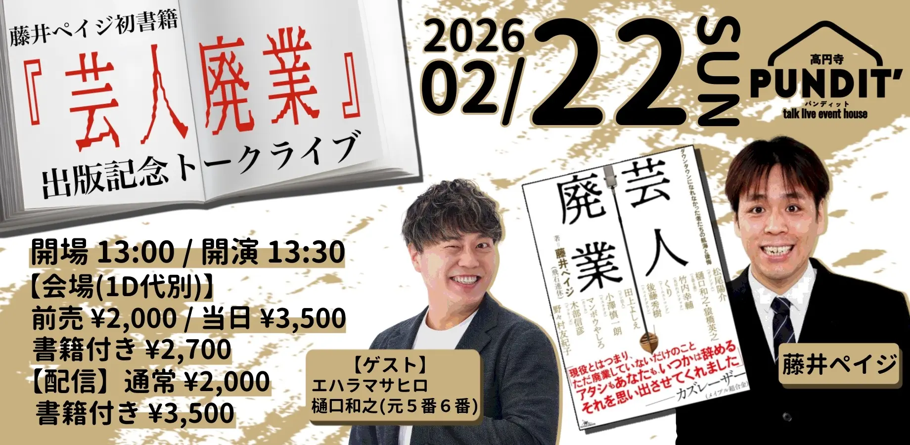 26年2月22日(日・昼)藤井ペイジ初書籍「芸人廃業」出版記念トークライブ