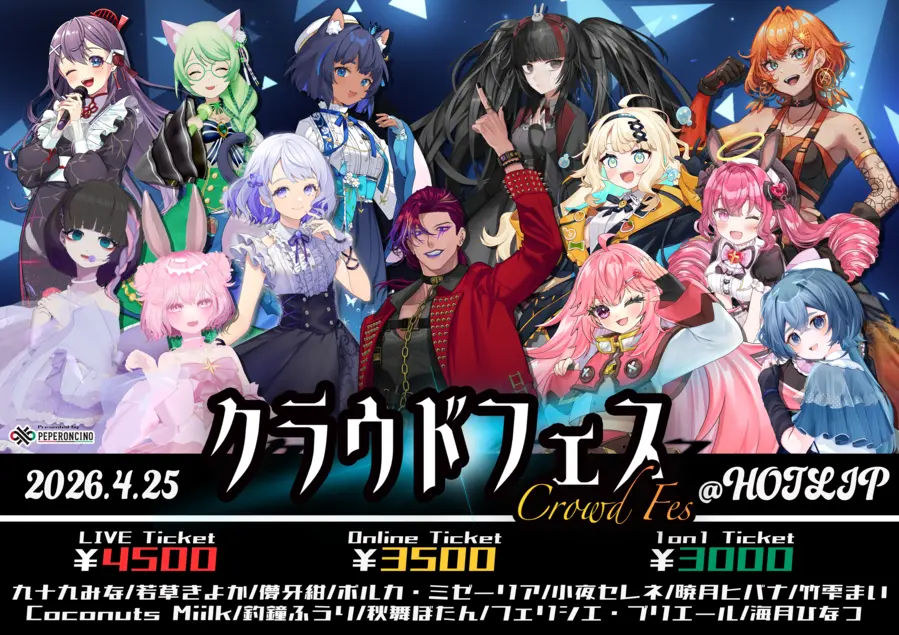 出演者 秋舞ぼたん / 竹雫まい / 若草きよか / ポルカ・ミゼーリア / 小夜セレネ / 暁月ヒバナ / フェリシエ・プリエール / Coconuts Miilk / 儚牙紺 / 海月ひなつ / 釣鐘ふうり / 九十九みな
