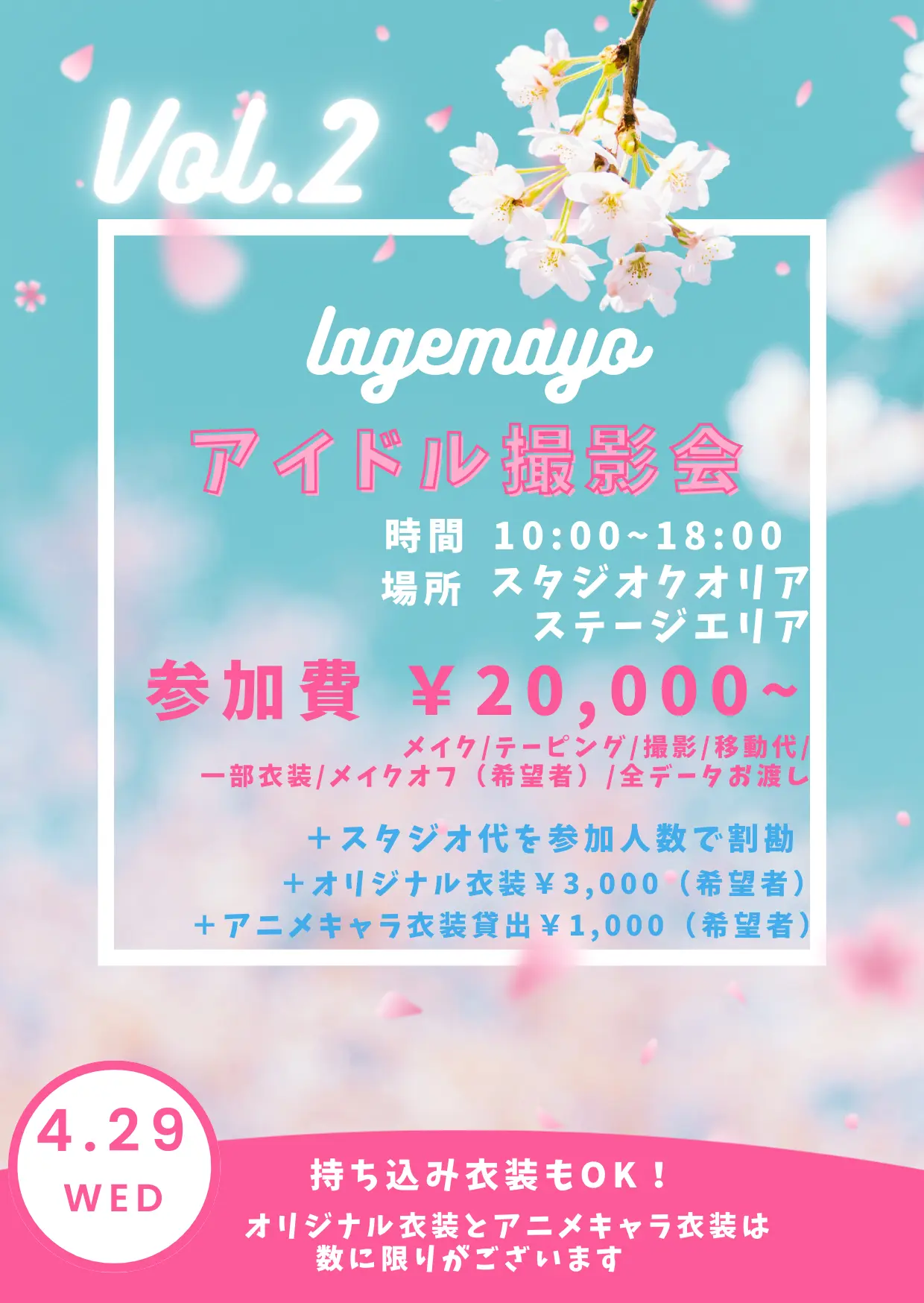 ウィッグ¥1000、衣装¥1000参加のみ