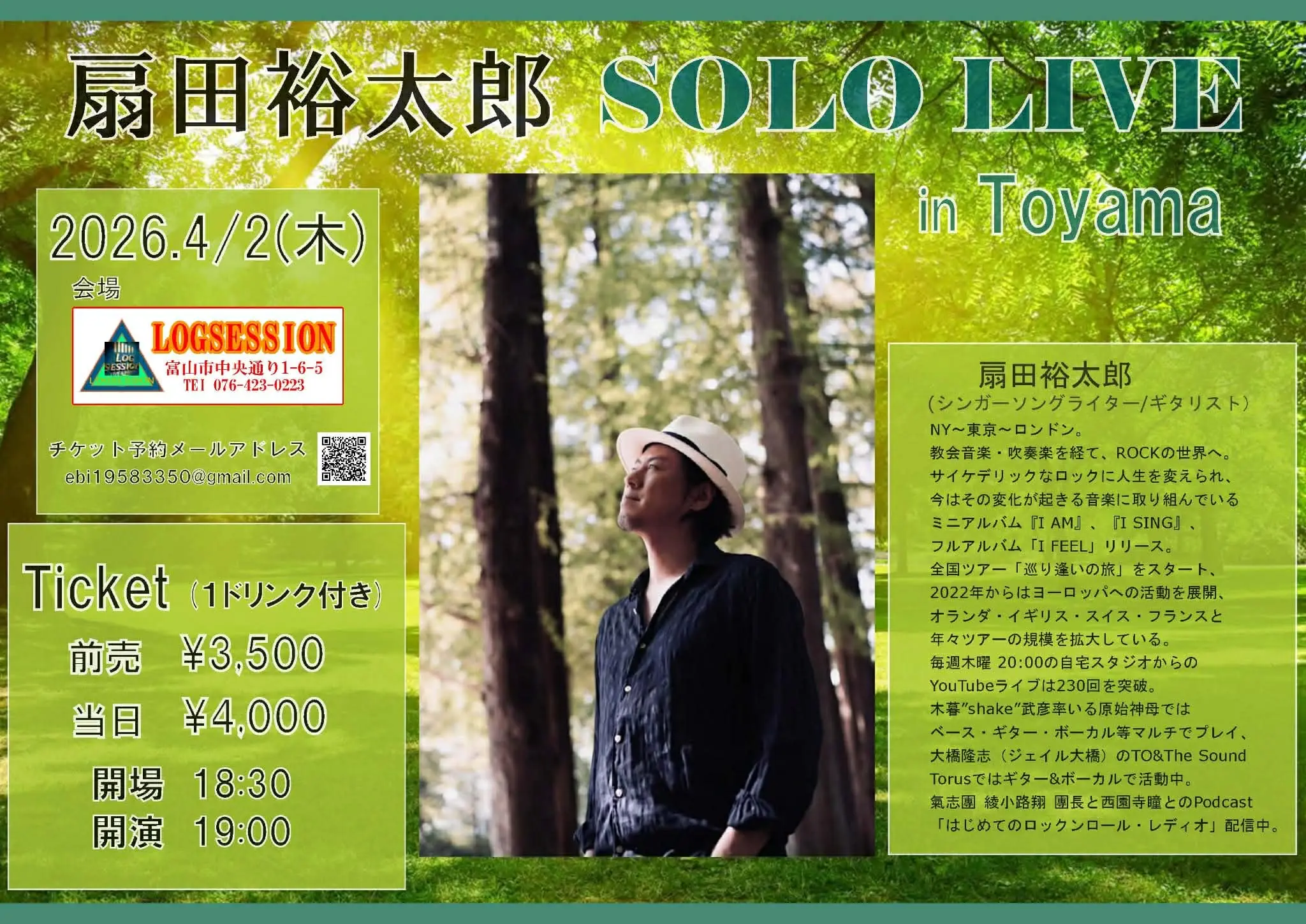 4/2(Thu) Yutaro Ogida Live in Toyama 2026 @富山 ログセッション からのLIVE配信を応援サポート!