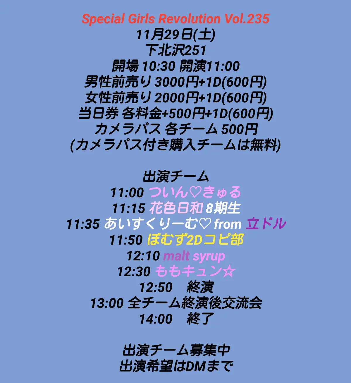 出演者 ついん♡きゅる / 花色日和 8期生 / あいすくりーむ♡ from 立ドル / ぼむず2Dコピ部 / malt syrup / ももキュン☆
