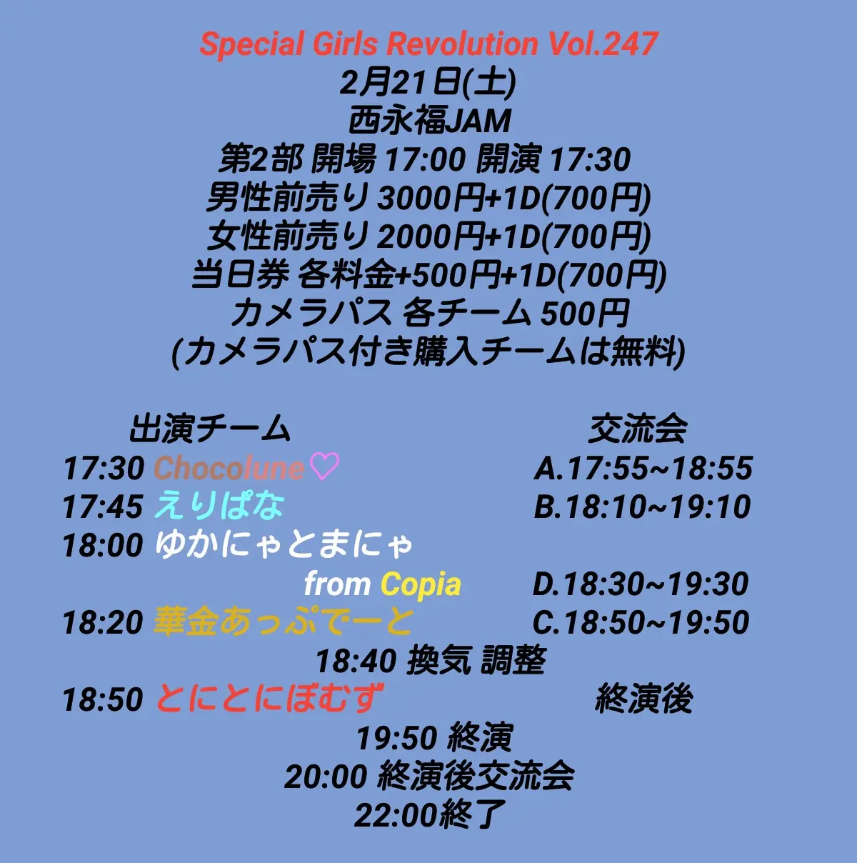 出演者 Chocolune ♡ / えりぱな / ゆかにゃとまにゃ from Copia / 華金あっぶでーと / とにとにぼむず