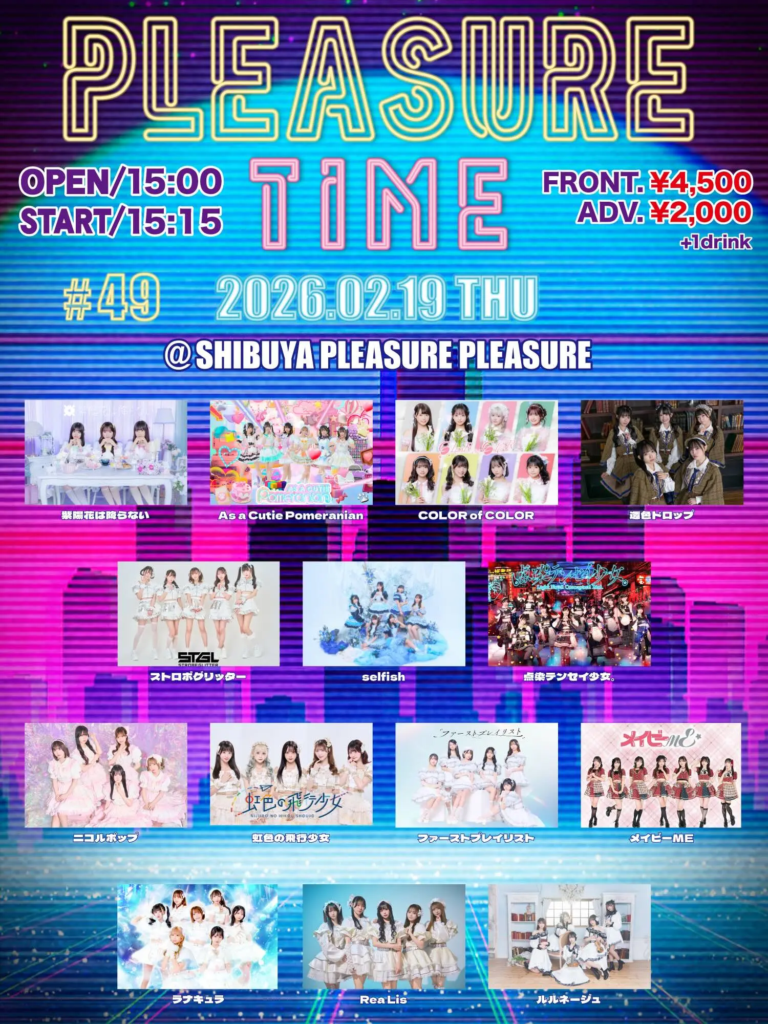 出演者 As a Cutie Pomeranian / 紫陽花は降らない / COLOR of COLOR / 透色ドロップ / ストロボグリッター / selfish / 点染テンセイ少女。 / ニコルポップ / 虹色の飛行少女 / ファーストプレイリスト / メイビーME / ラナキュラ / Rea Lis / ルルネージュ