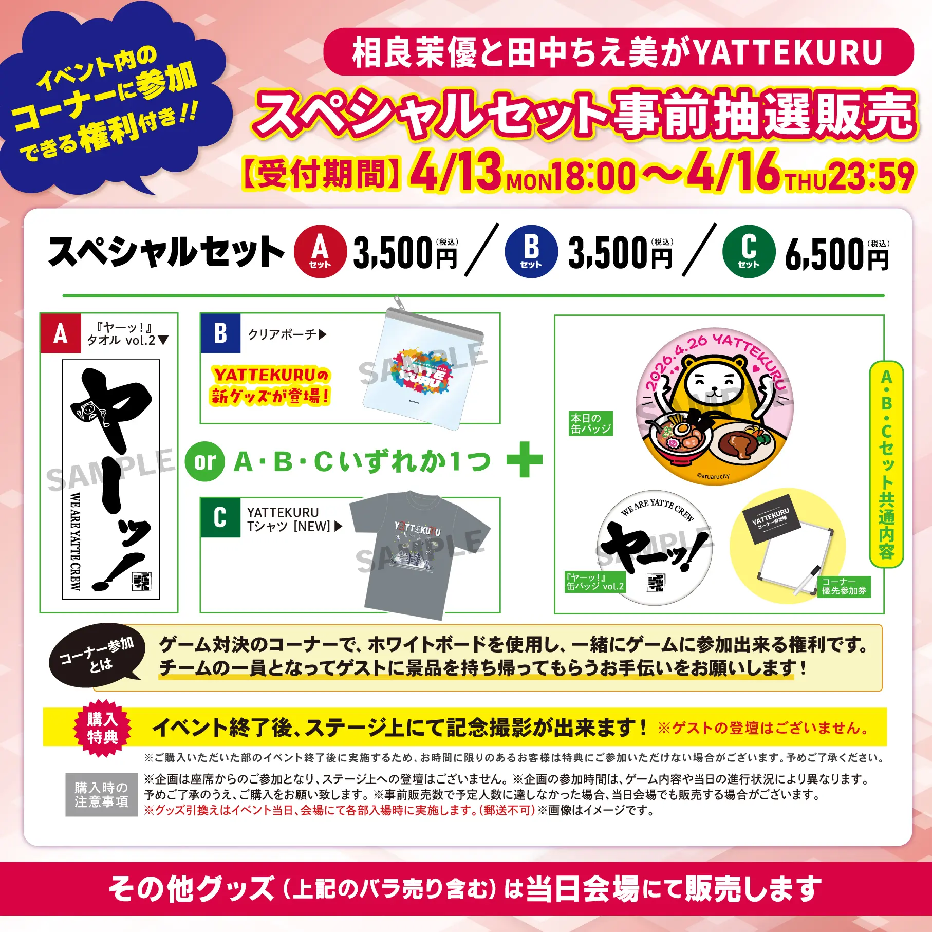 開演時間までにご入場いただけない場合、コーナー参加券は無効となる場合がございますので予めご了承ください。(YATTEKURU Tシャツ)