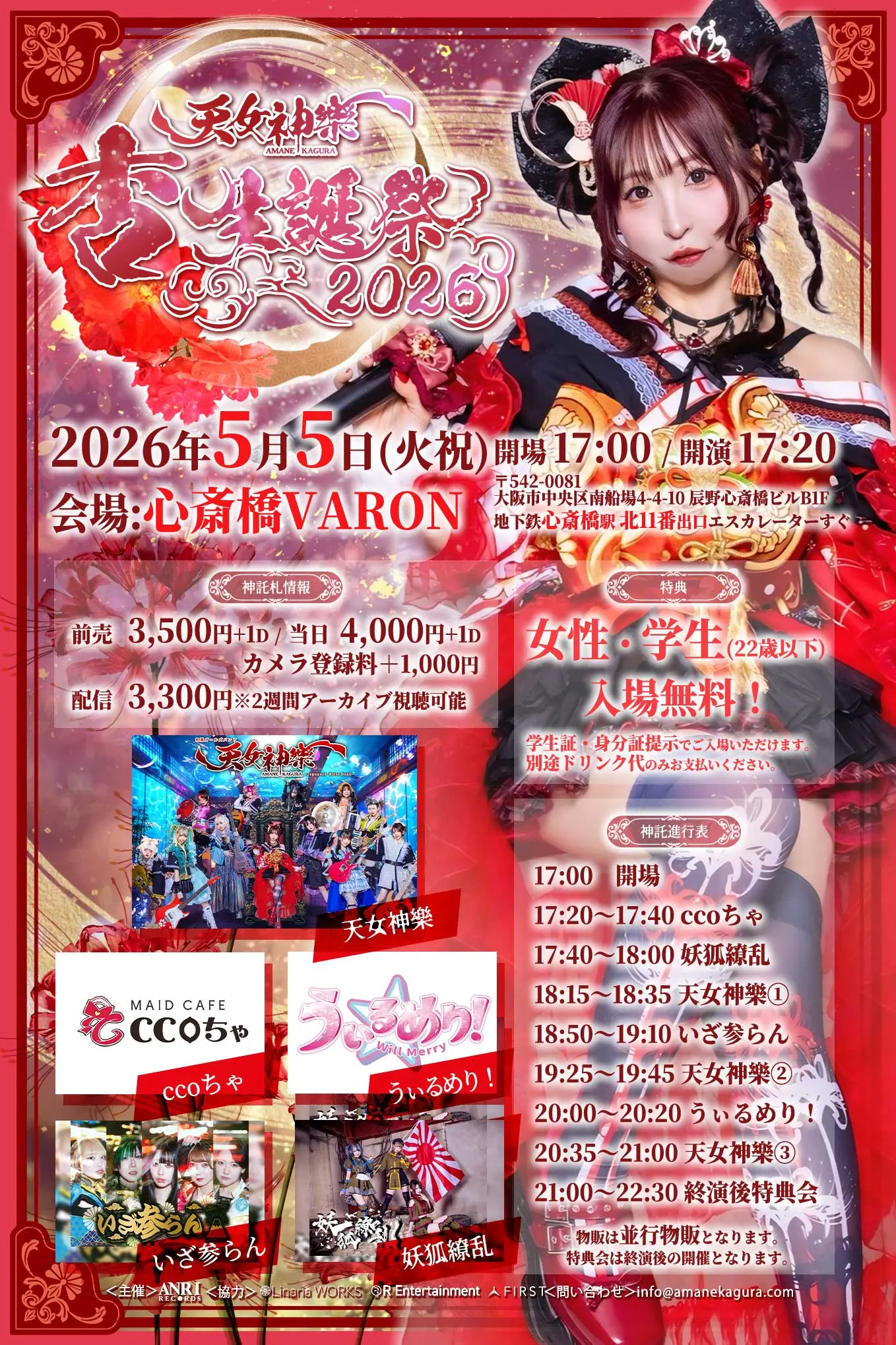 2026年05月05日(火 祝)心斎橋VARON 天女神樂主催 『杏生誕祭2026』