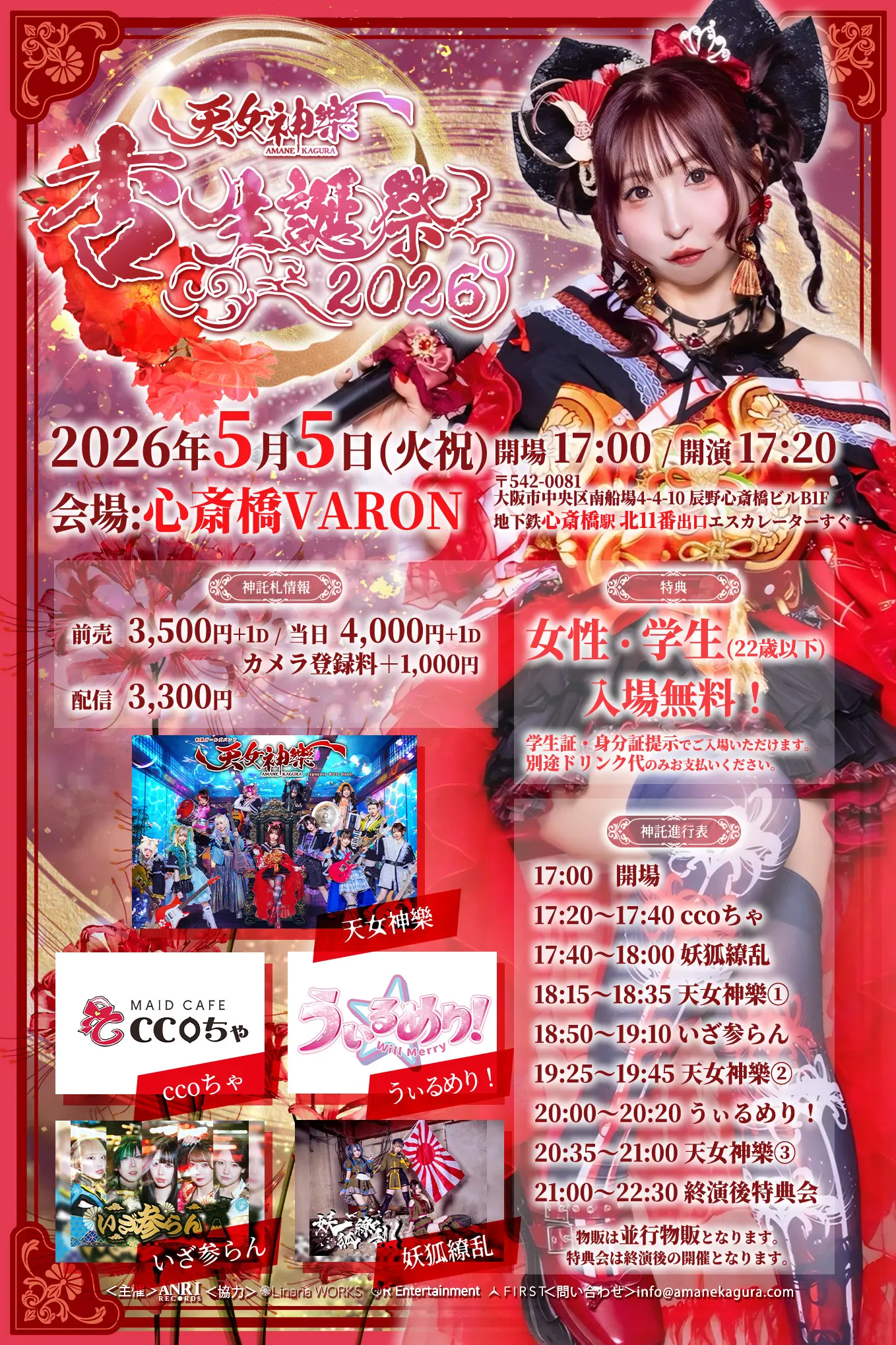 2026年12月09日(水)なんばHatch 天女神樂 始動3周年記念 単独公演『天守凱旋』