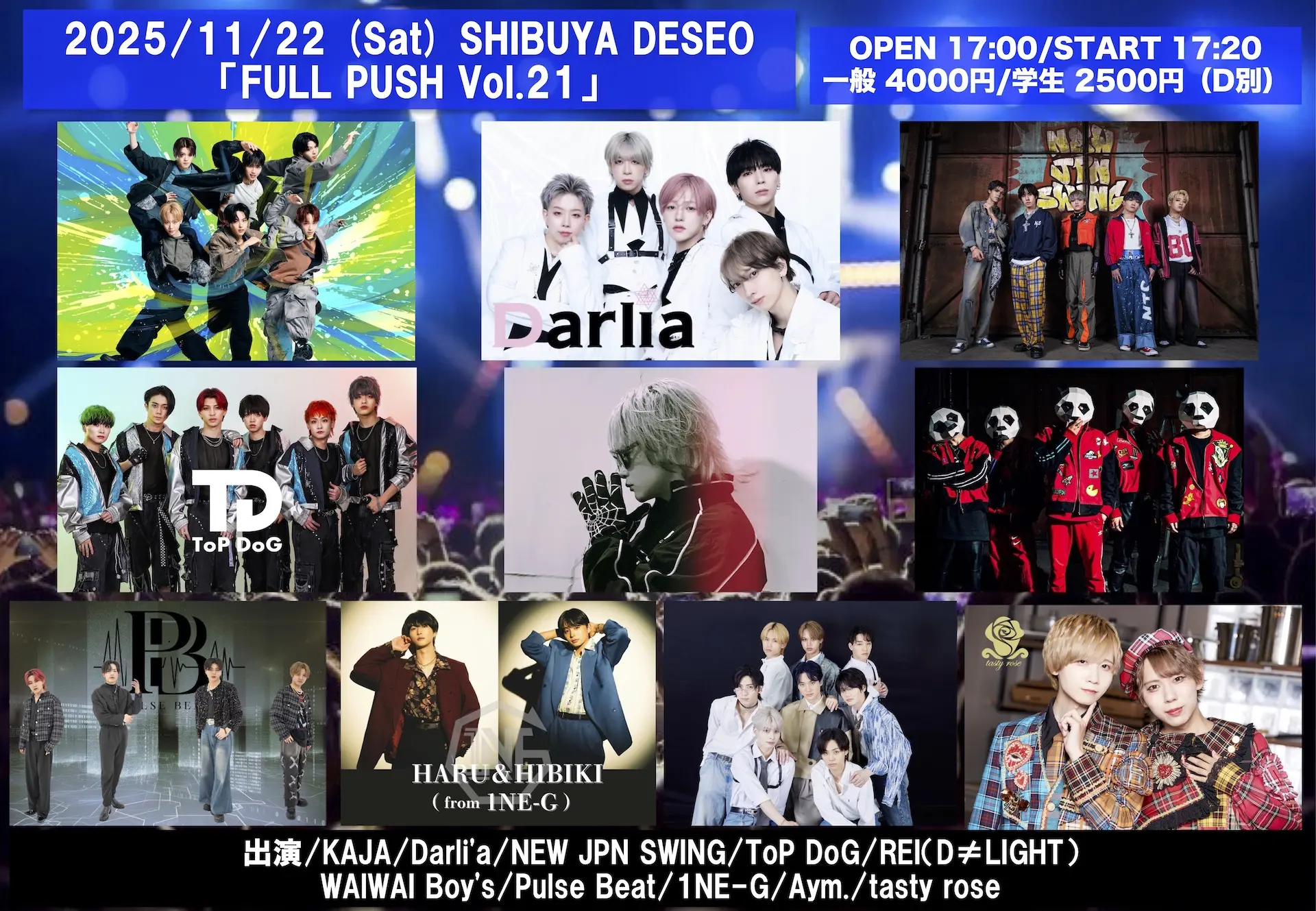 出演者 ToP DoG / REI(D≠LIGHT) / KAJA / Darli'a / NEW JPN SWING / WAIWAI Boy's / Pulse Beat / 1NE-G / Aym. / tasty rose