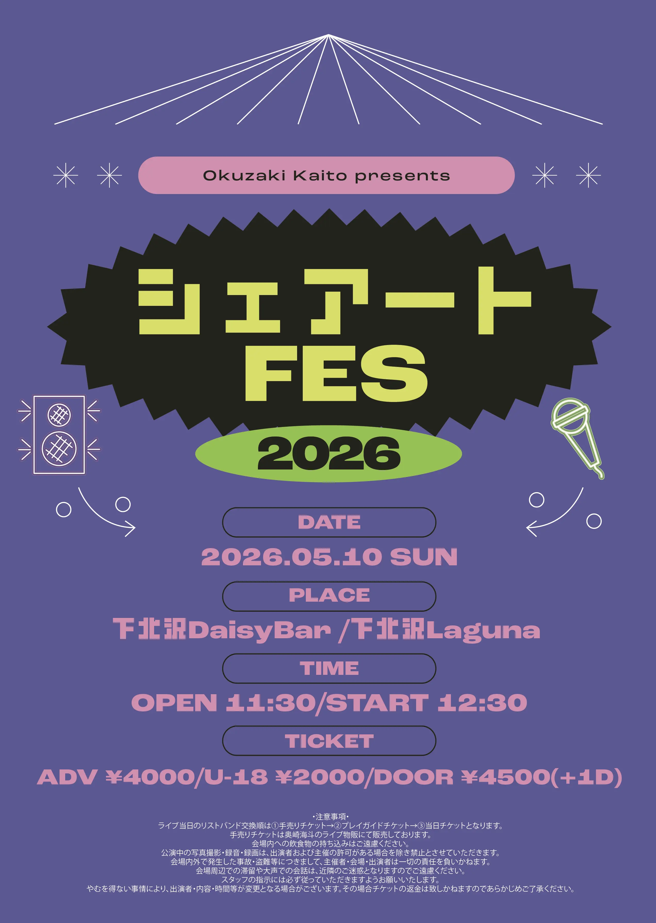 DaisyBar/Laguna 往来自由 奥崎海斗 presents「シェアートFES 2026」