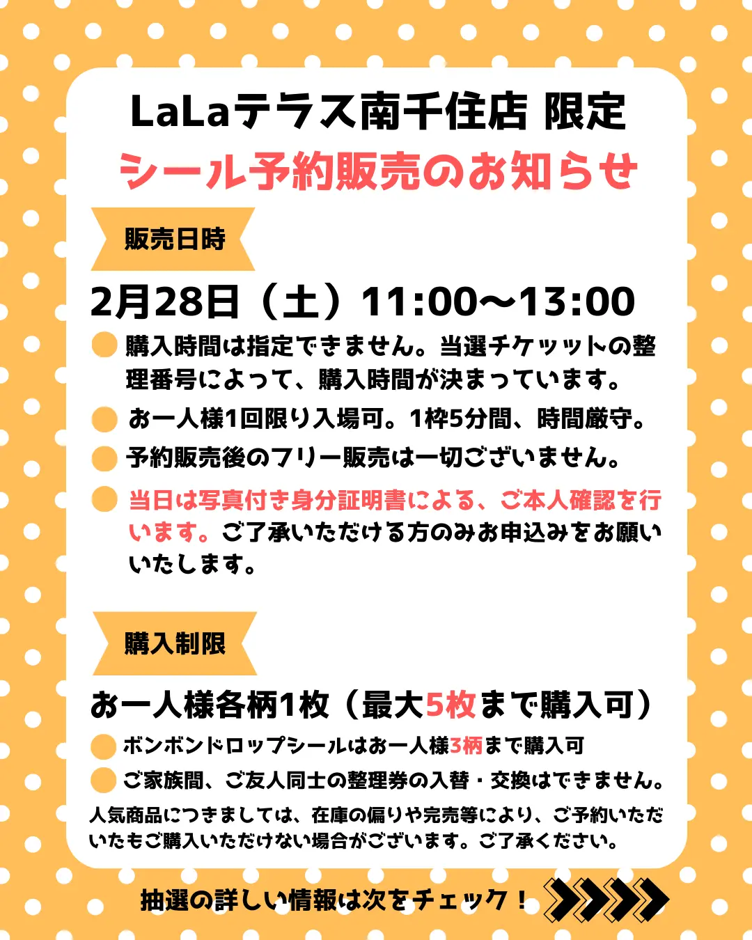 2月28日(土)【パーティリコ 仙台店】シール販売 入場整理券