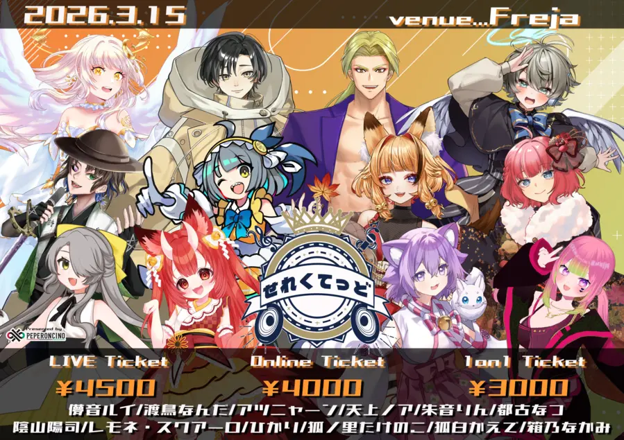 出演者 儚音ルイ / 狐ノ里たけのこ / 朱音りん / 天上ノア / 箱乃なかみ / 都古なつ / 狐白かえで / 陰山陽司 / 渡鳥なんだ / ひかり / アツニャーン / レモネ・スクアーロ