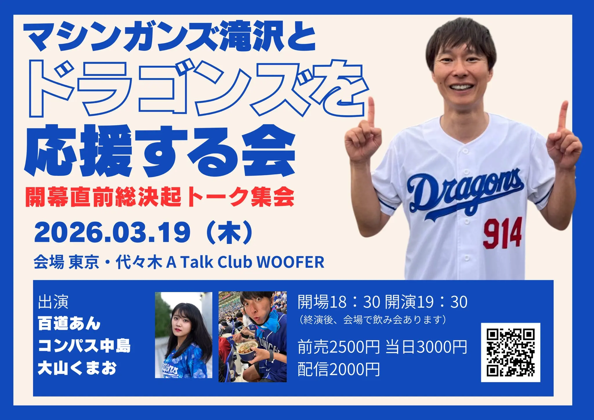 「マシンガンズ滝沢とドラゴンズを応援する会 開幕直前総決起集会(仮)」