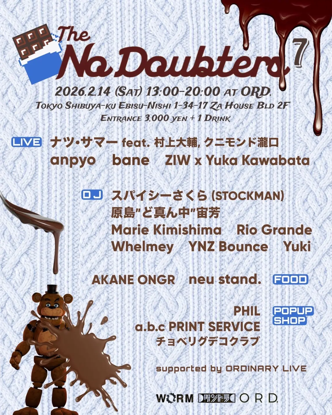 当日エントランスにて1ドリンク代(¥700)頂戴いたします。