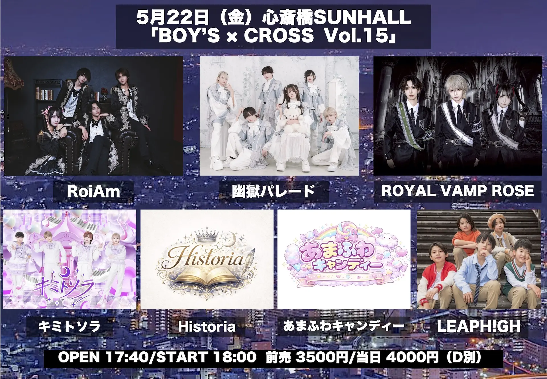 5月22日(金)心斎橋SUNHALL 「BOY’S × CROSS Vol.15」