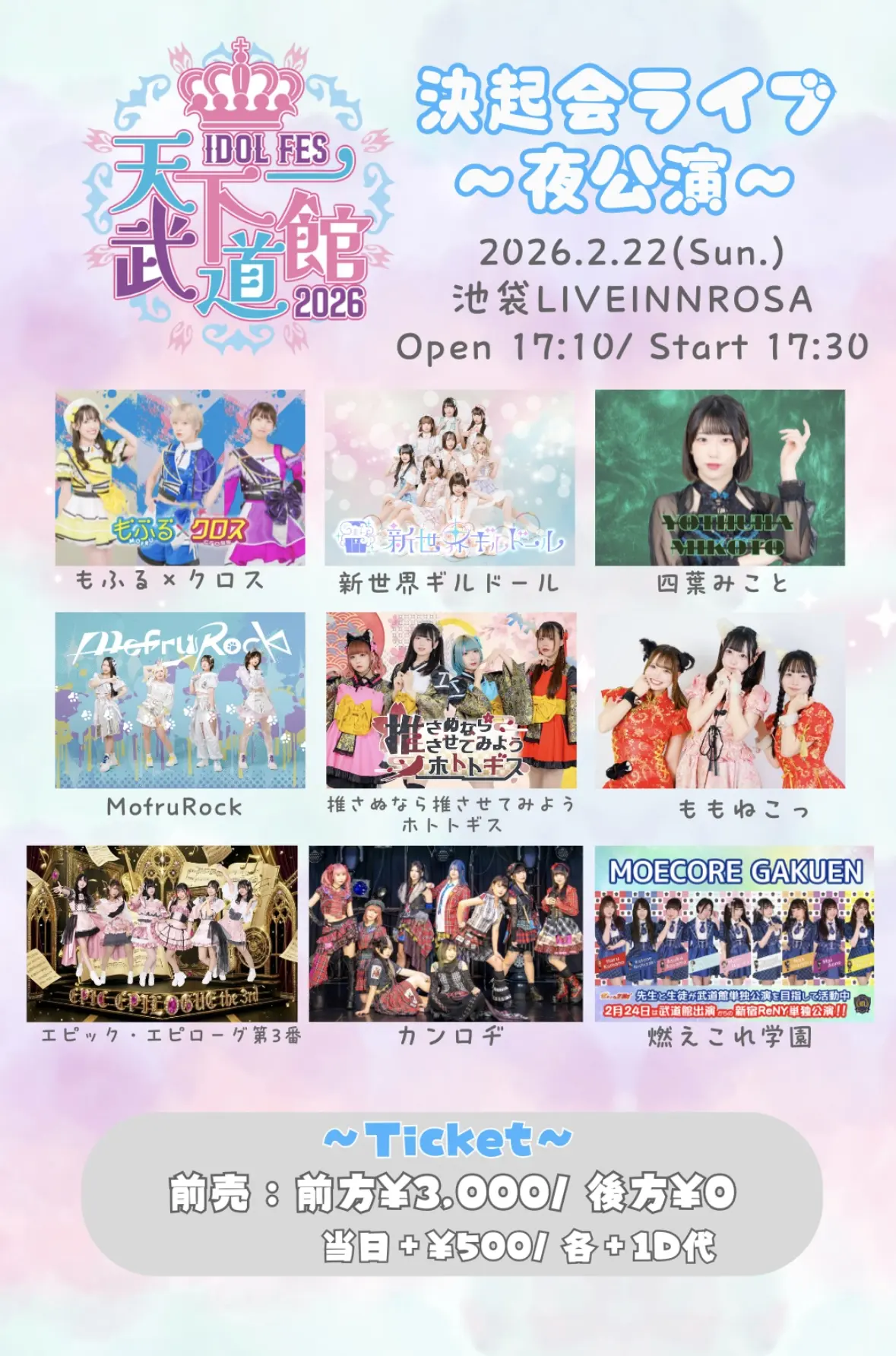出演者 もふる×クロス / 新世界ギルドール / MofruRock / 推さぬなら推させてみようホトトギス / 四葉みこと / ももねこっ / エピック・エピローグ第3番 / 燃えこれ学園 / カンロヂ