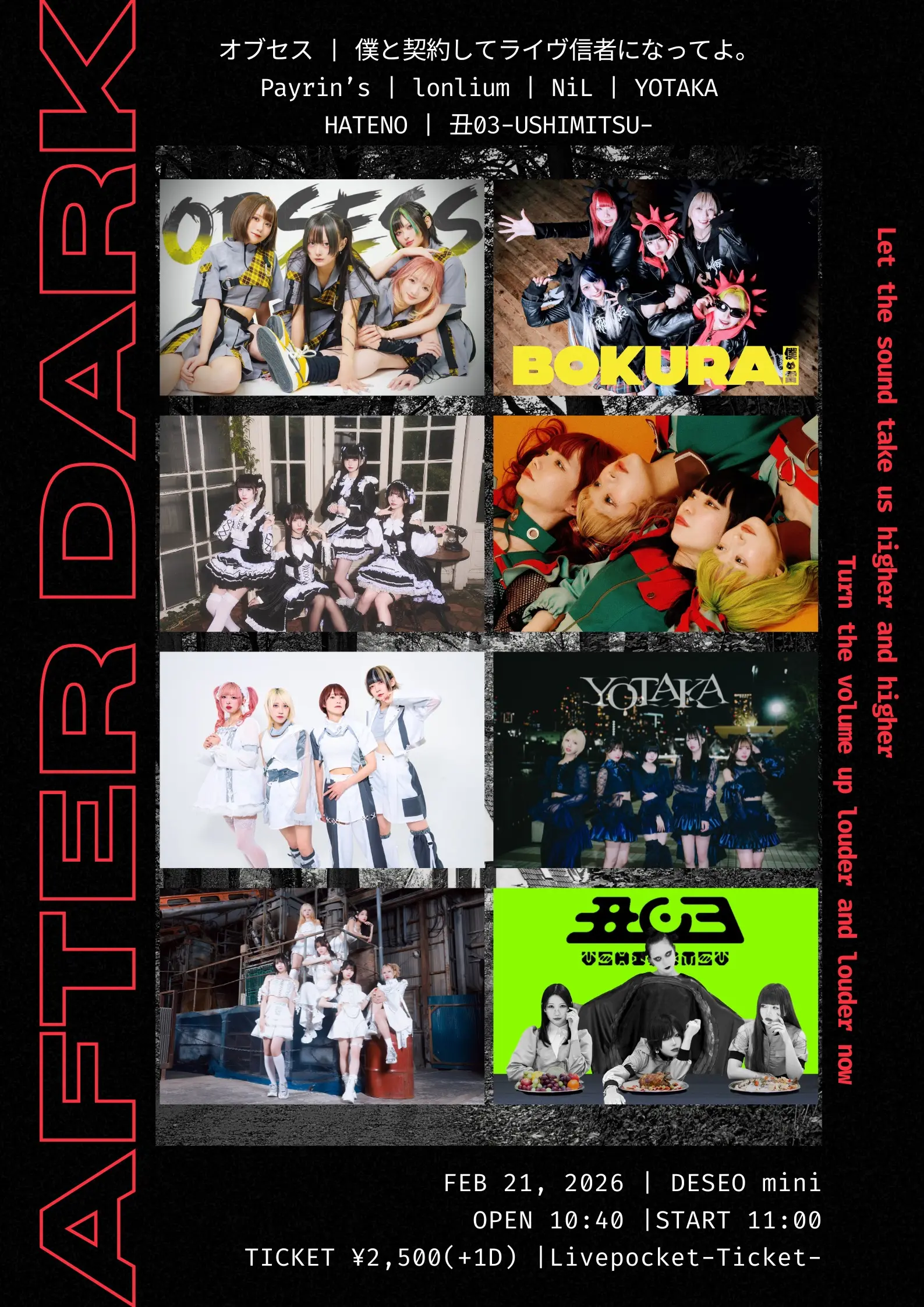 出演者 NiL / オブセス / HATENO / Payrin's / 僕と契約してライヴ信者になってよ。 / YOTAKA / lonlium / 丑03-USHIMITSU-
