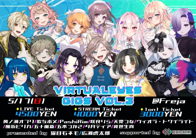 出演者 猫目石ネモ / 広瀬虎太郎 / 五木つかさ / 黄ノ瀬オブリ / 五十嵐斎 / 天愛つな / ヴィオラ・トワイライト / 夜世生宵 / 歌与ポメ / 風街ピリカ / PashiRim / 夕月ティア / 咲良りら