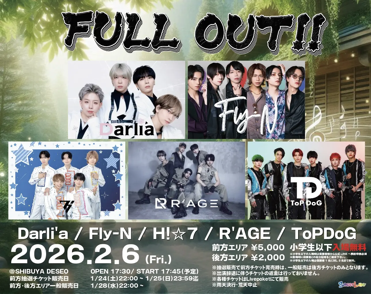 出演者 R'AGE / Darli' a / H!☆7(ハイセブン) / ToPDog / Fly-N