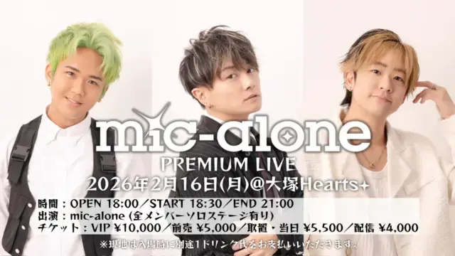 2/16(月)mic-alone PREMIUM LIVE