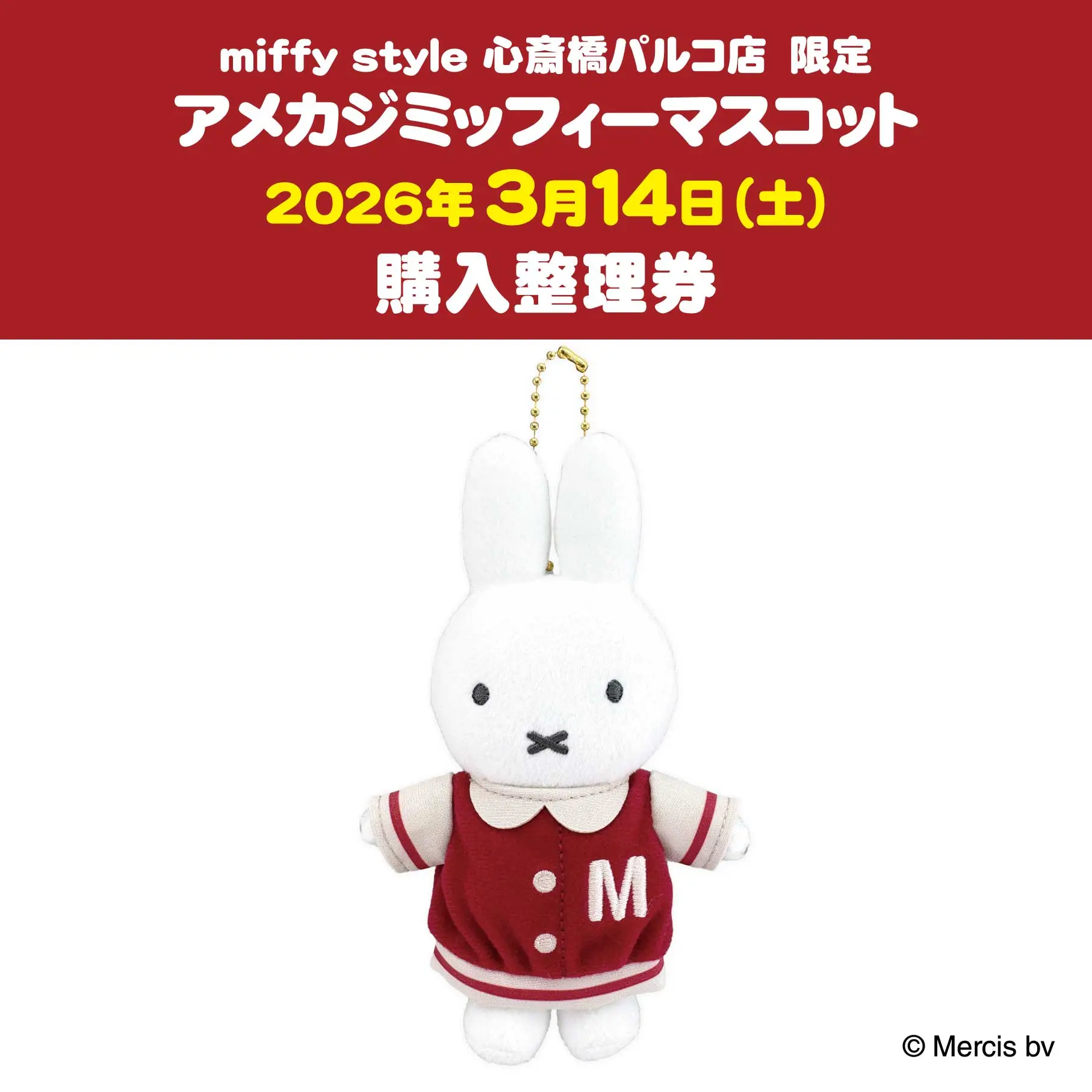 ※【3月14日(土)販売】『心斎橋パルコ店限定 アメカジミッフィーマスコット』の抽選申込ページではございませんのでご注意ください。
