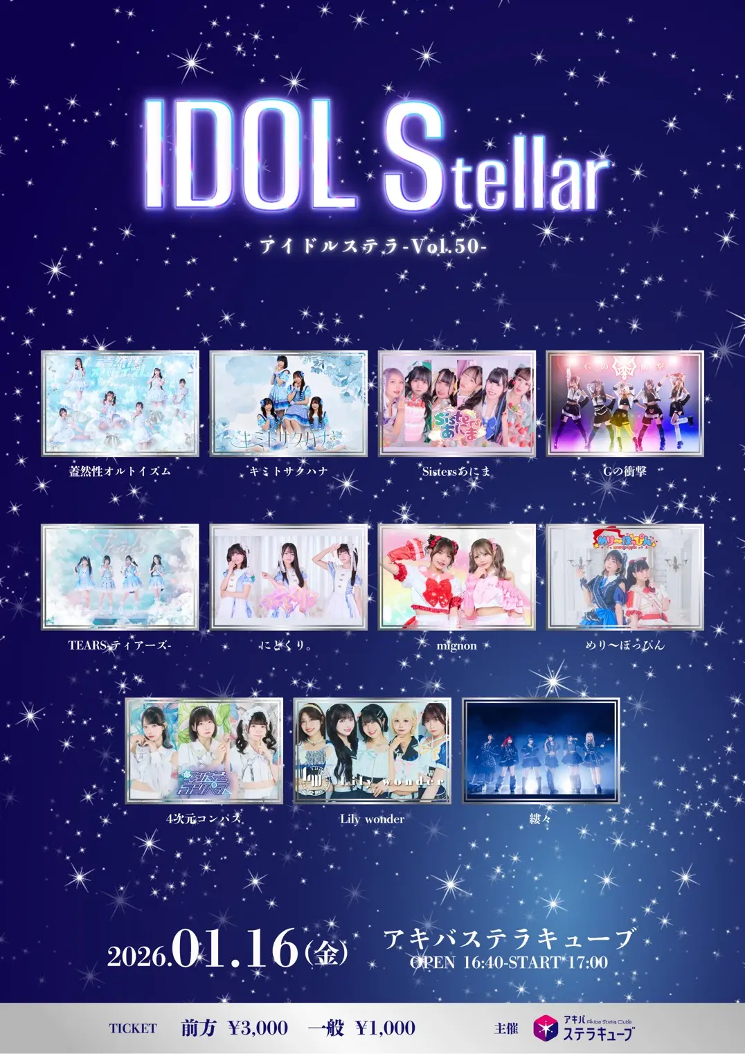 出演者 蓋然性オルトイズム / キミトサクハナ / Sistersあにま / Gの衝撃 / TEARS-ティアーズ- / にとくり。 / mignon / めり〜ぽっぴん / 4次元コンパス / Lily wonder / 縷々